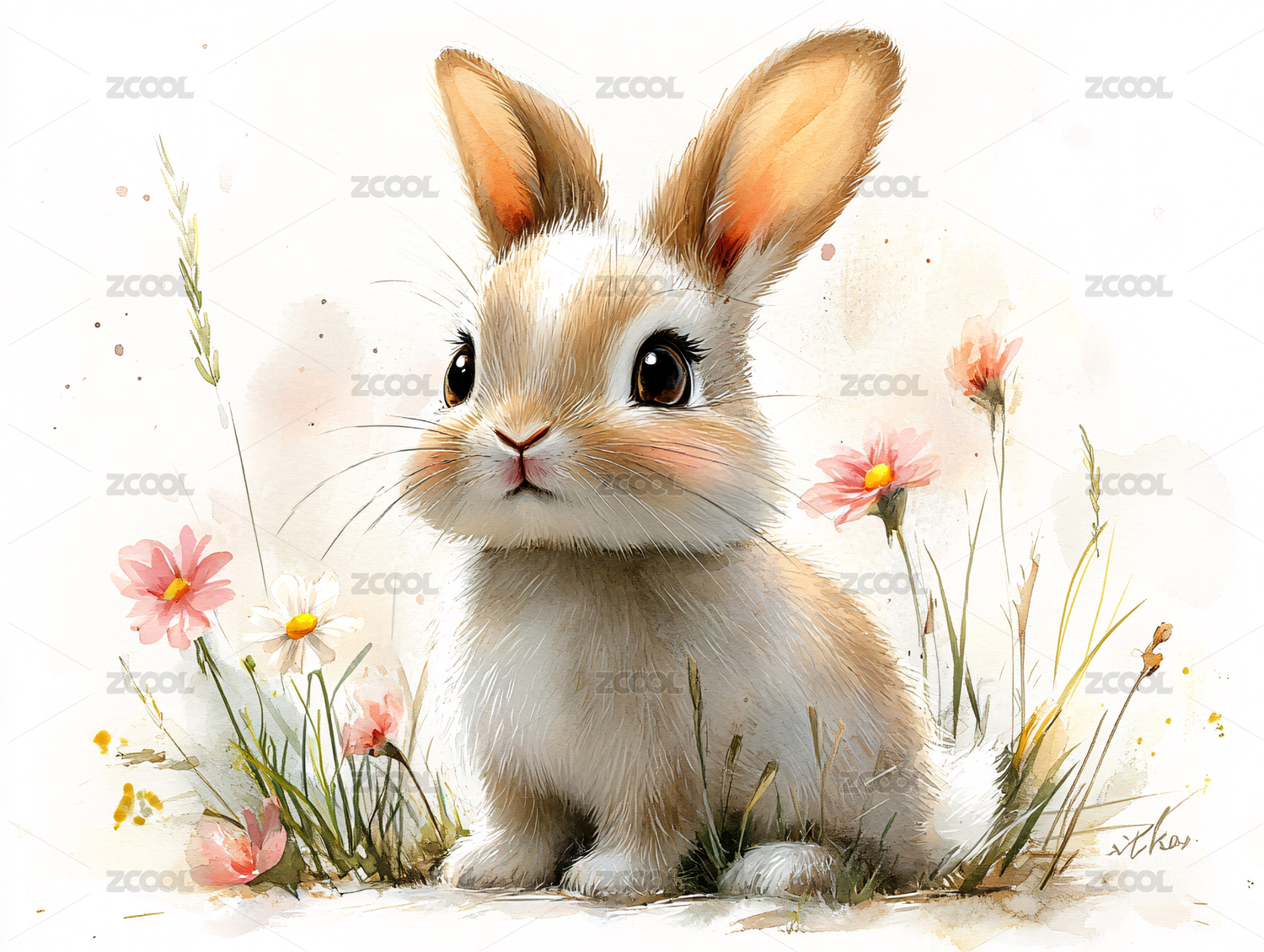 中秋节,兔子,可爱,呆萌,卡通,坐姿,眼睛,耳朵,斑点,温馨