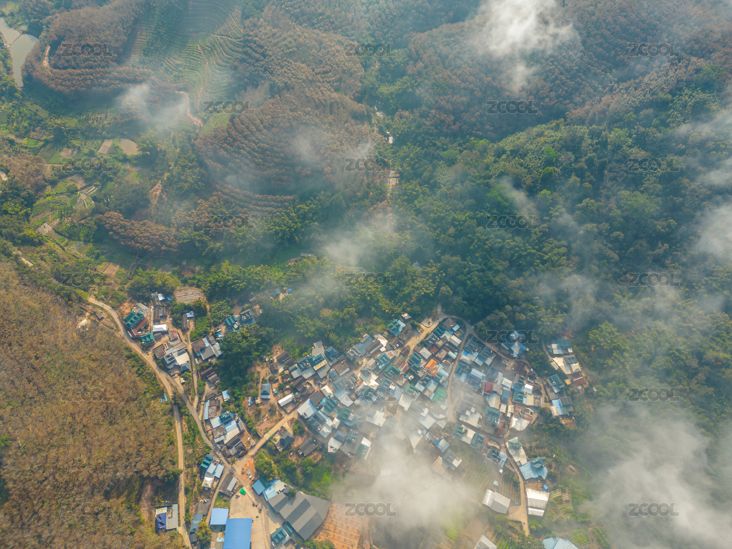 山村,田园,乡村,田野,房屋,建筑,绿色,树木,植被,自然