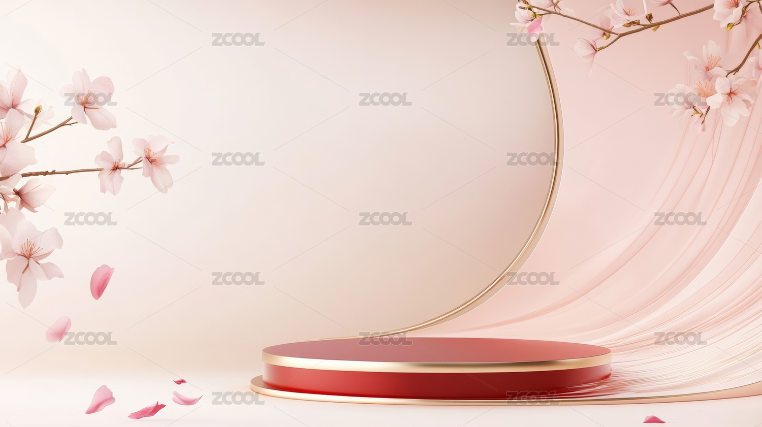 3D渲染浪漫花瓣电商产品展台