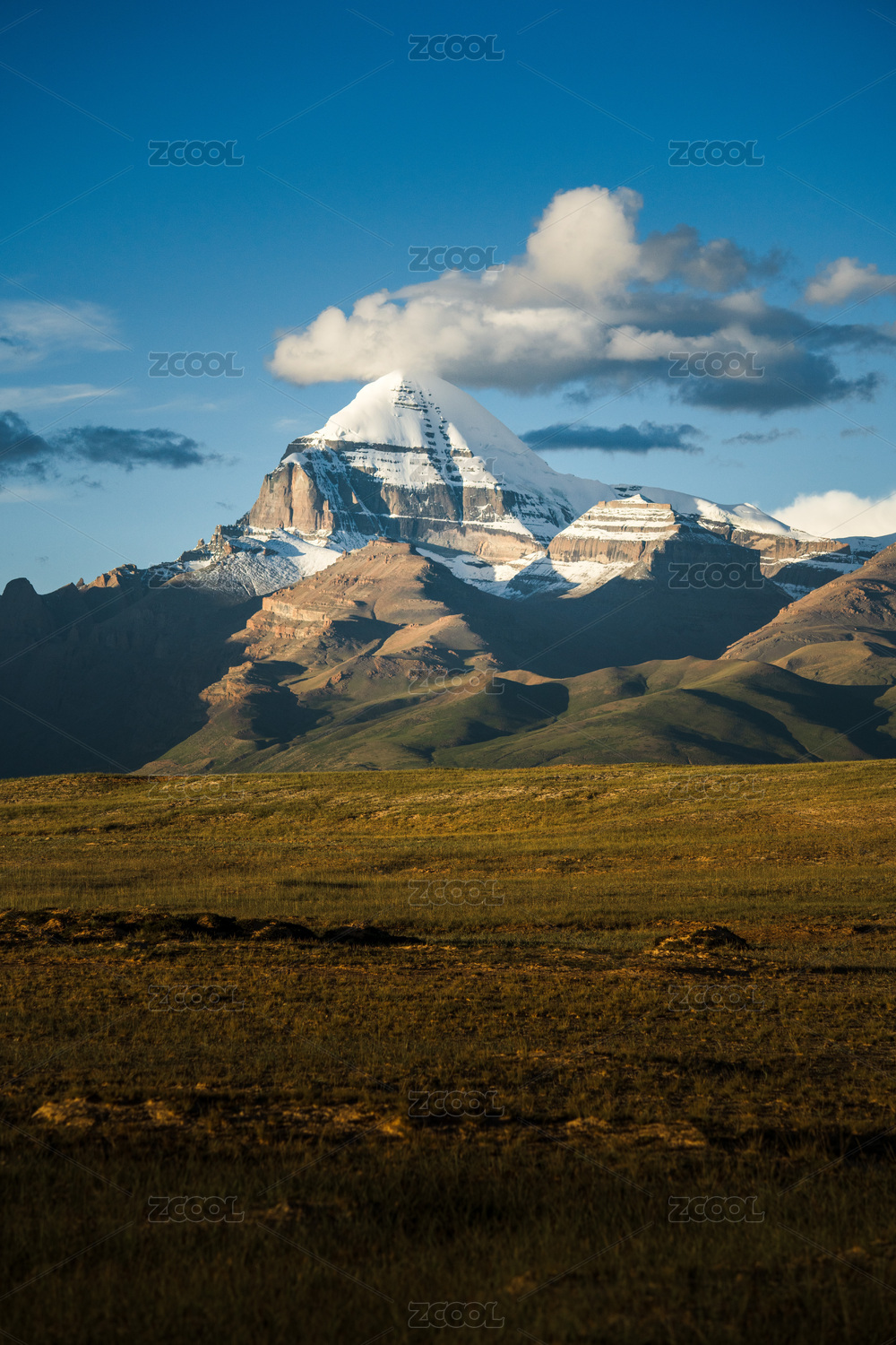 中国冈底斯山脉冈仁波齐主峰和起伏的山景