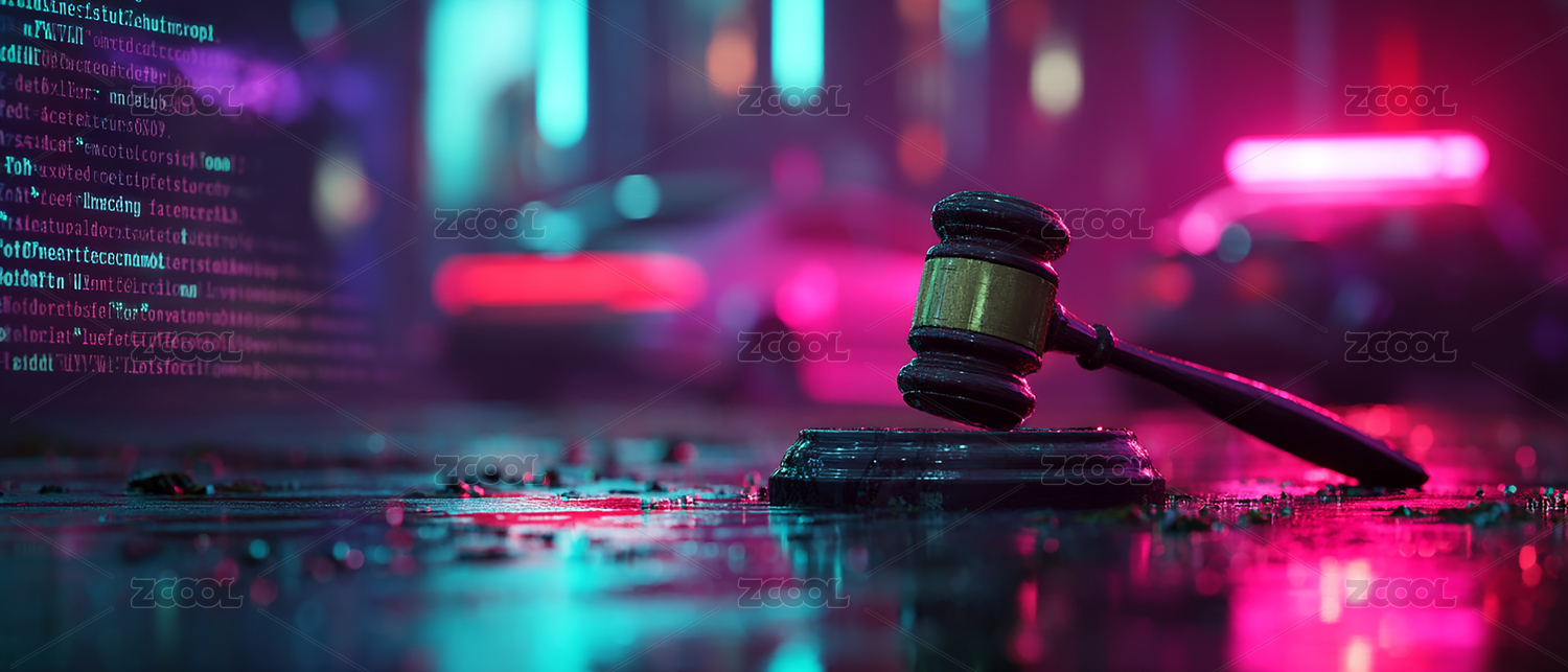 带有霓虹线条装饰的法槌艺术画面