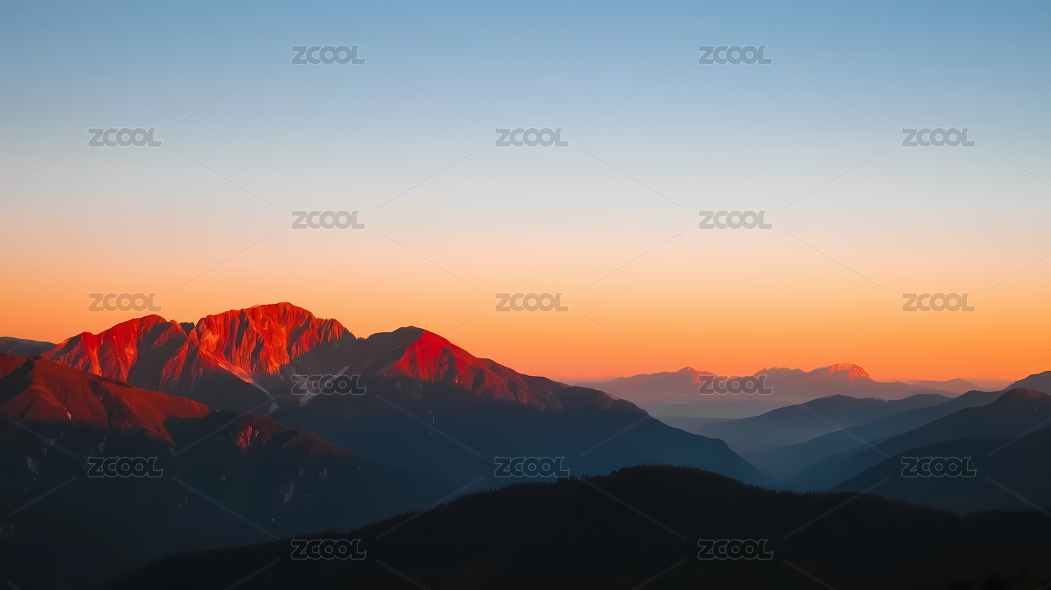 山脉,自然,风景,火烧云,夕阳,巍峨,浓郁,山峰,脉络