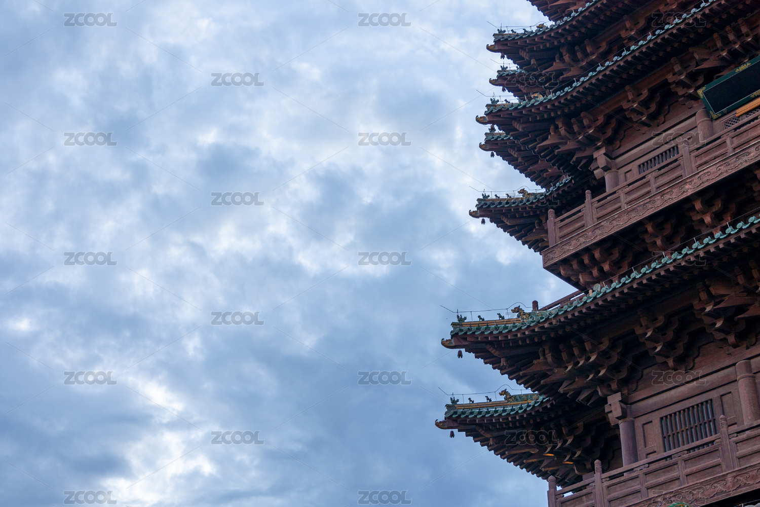 天津大型传统仿古建筑群楼阁的多重飞檐