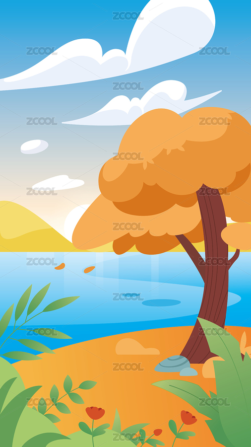 插画,插图,手绘,卡通,风景,新疆,胡杨林,秋天,秋日,秋季