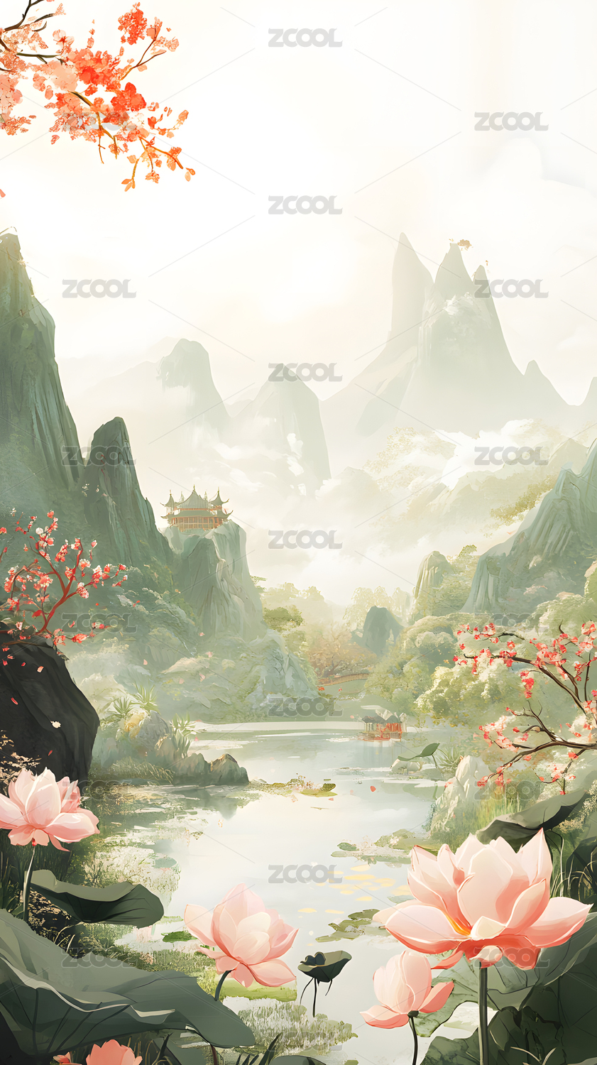 新中式山水背景