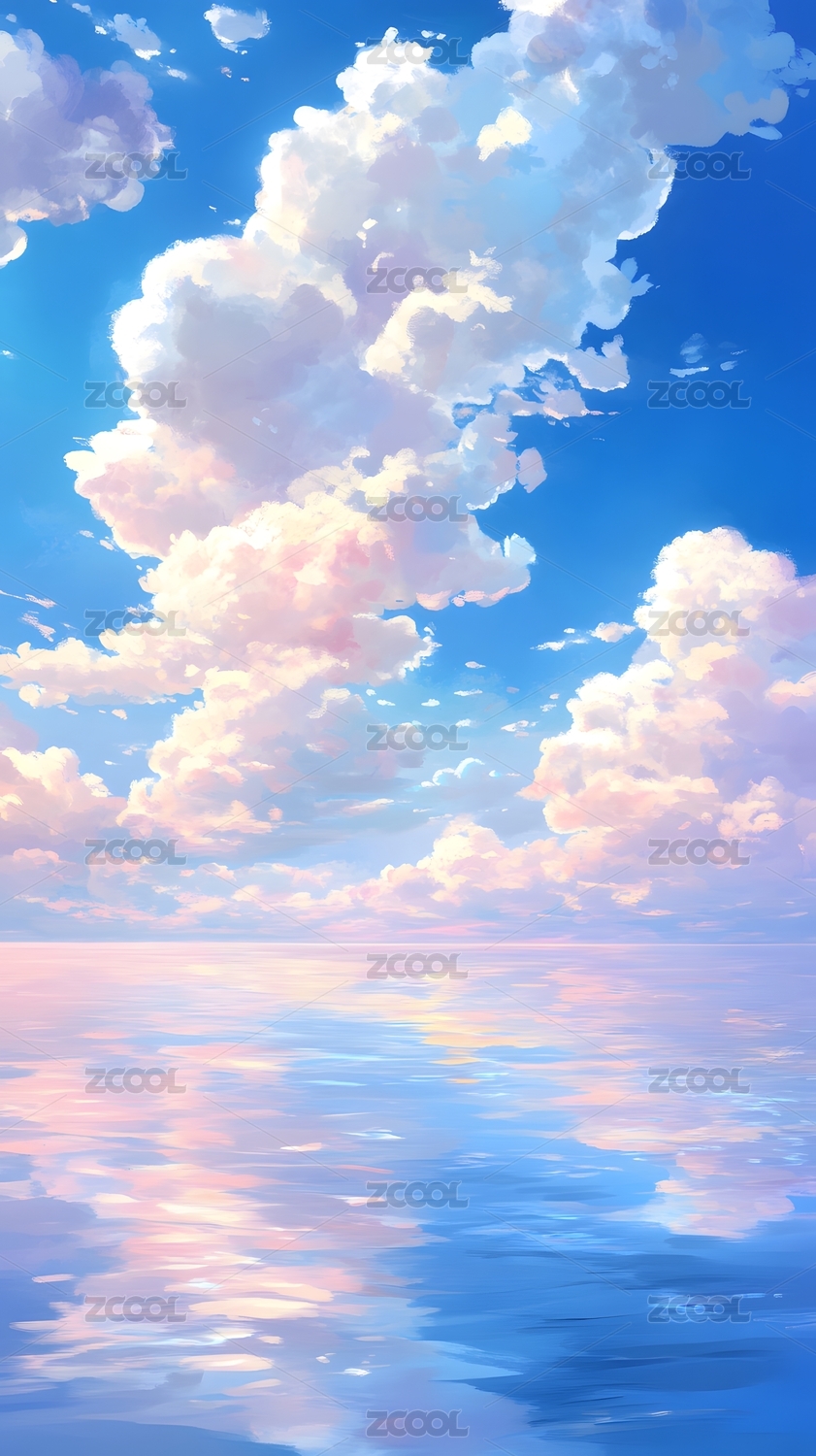 治愈梦幻海边场景龙猫云彩飞鸟天空