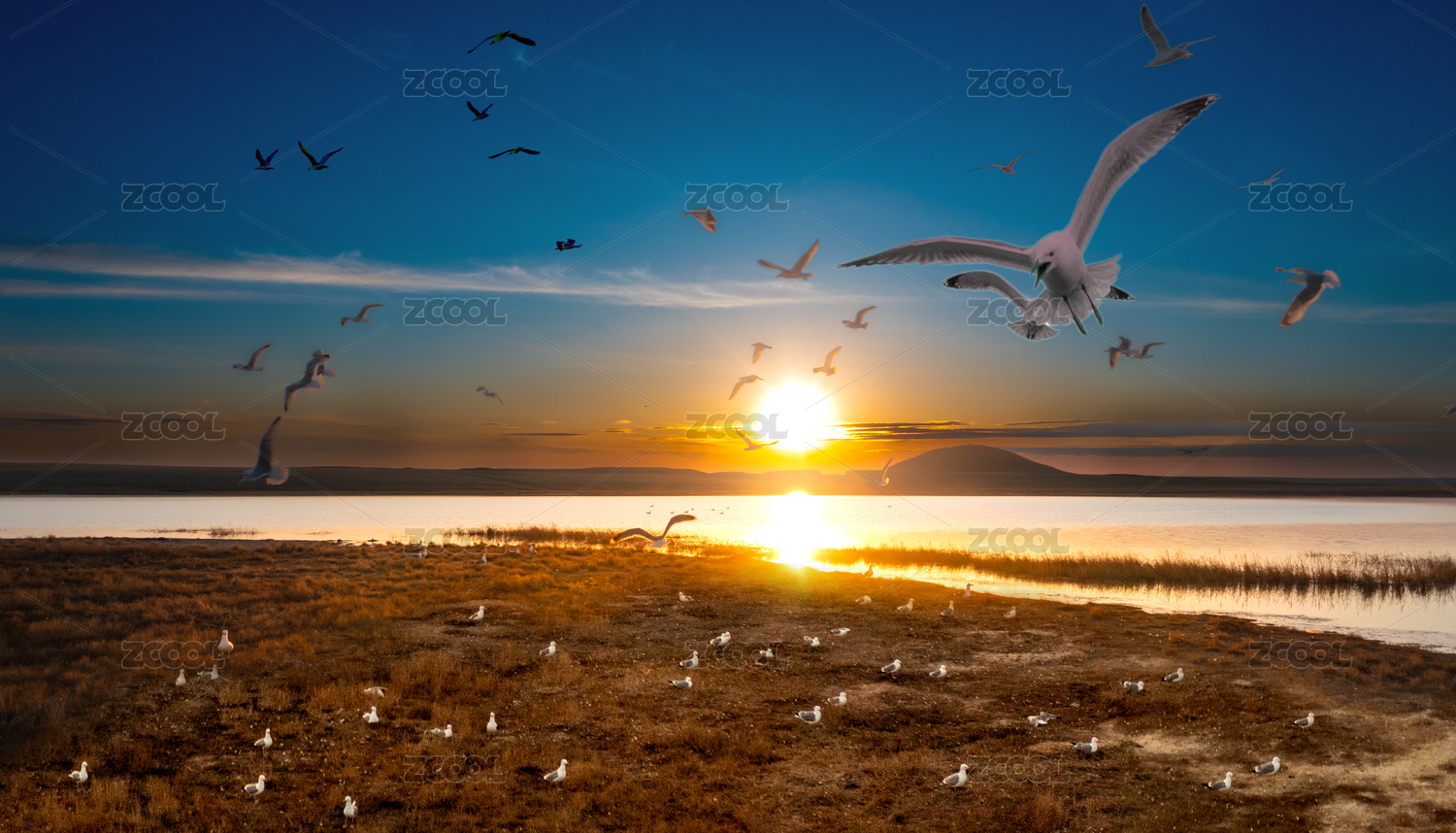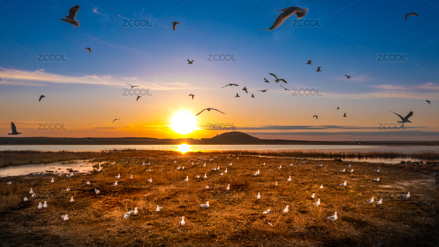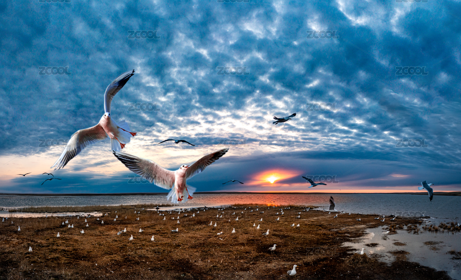 中国河北秦皇岛北戴河湿地飞翔的鸟群