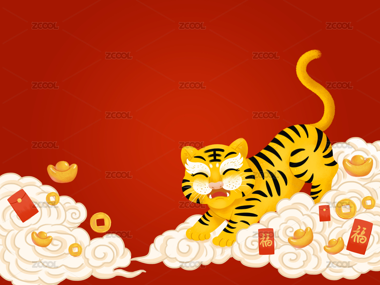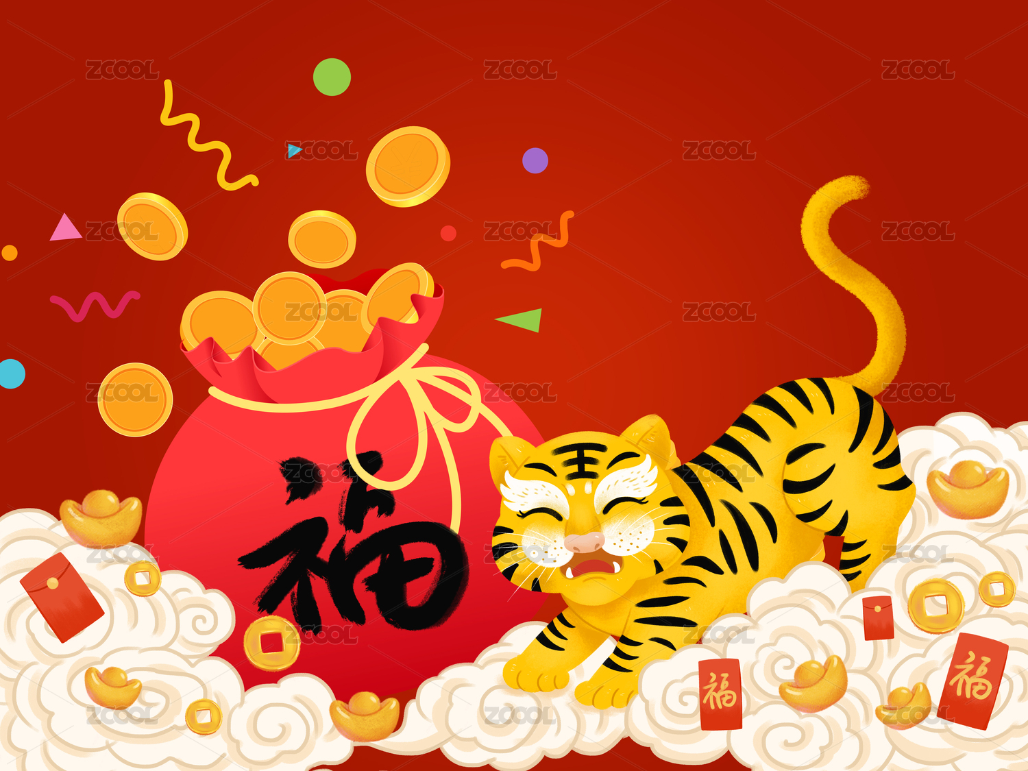 财神,老虎,虎年,财神爷,新年,春节,新春,卡通,矢量,手绘
