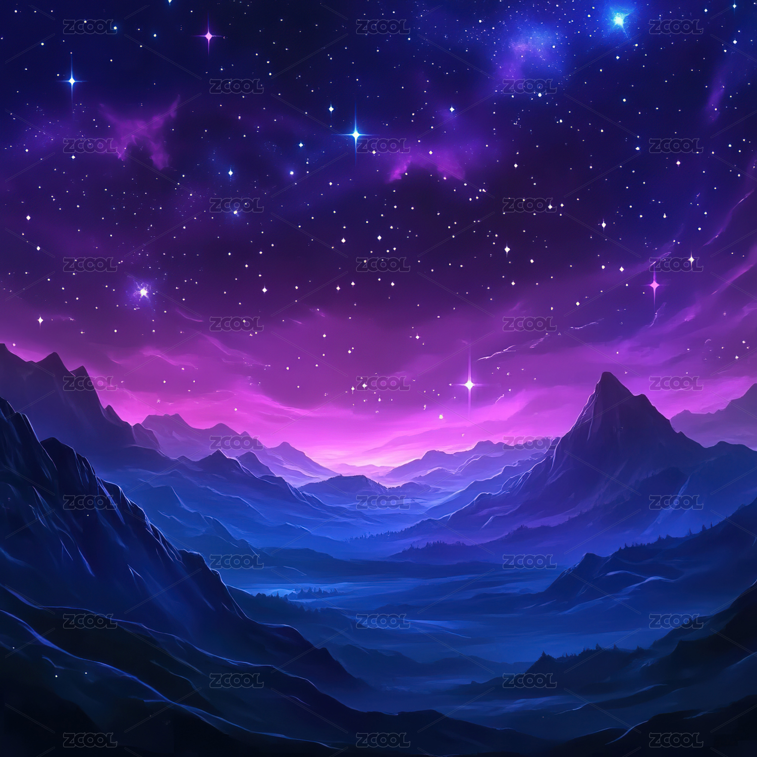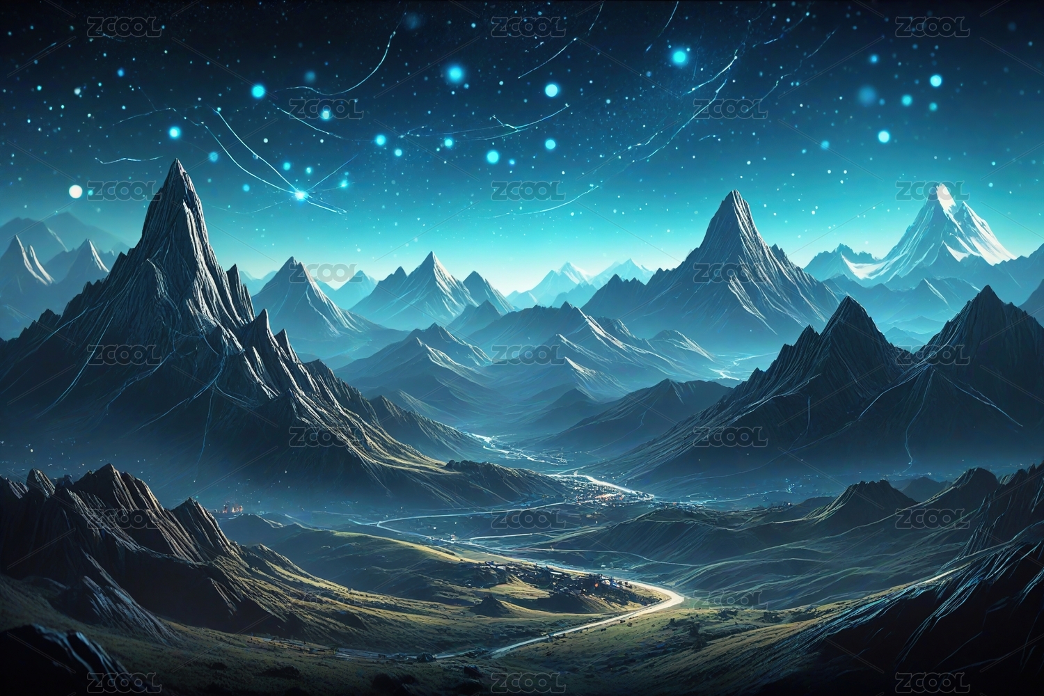 星空下的奇幻山峦 梦幻光影