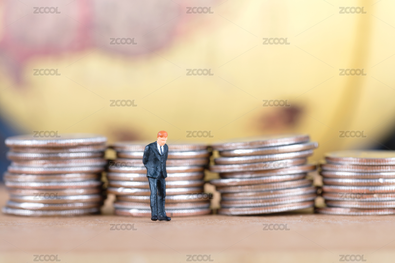 微缩小人站着金币上面