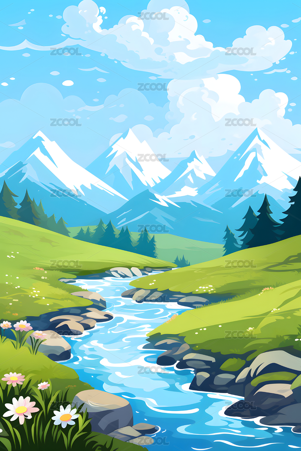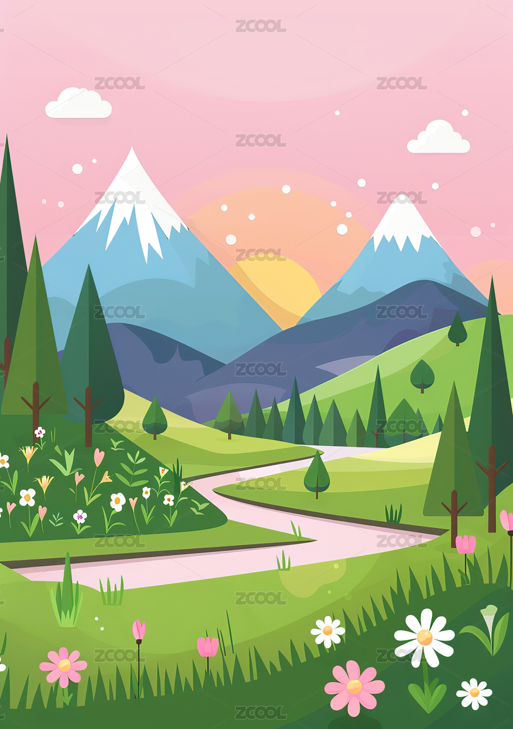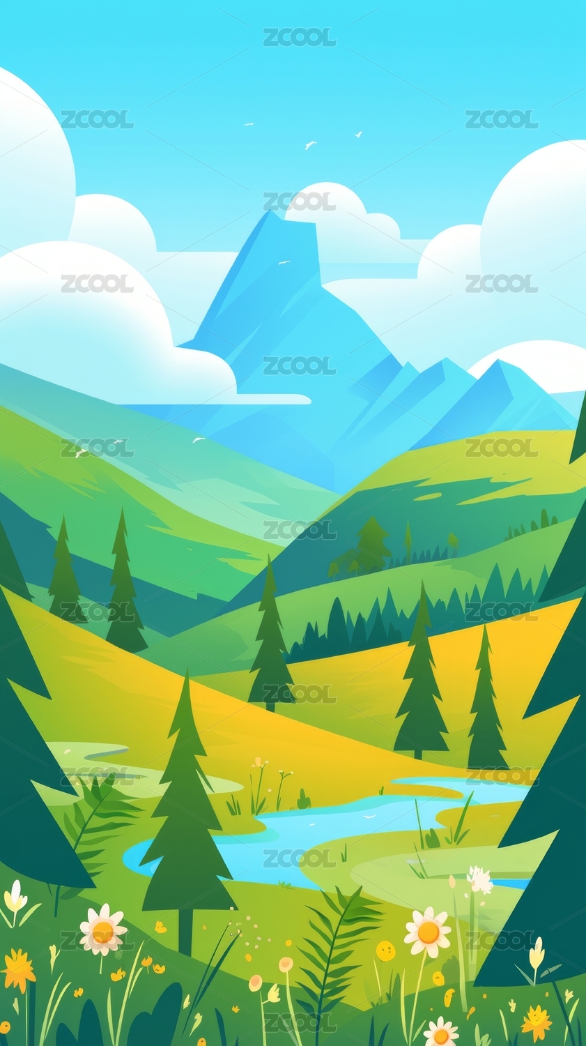 风景,插画,树,天空,旅游,背景,样式,抽象,艺术