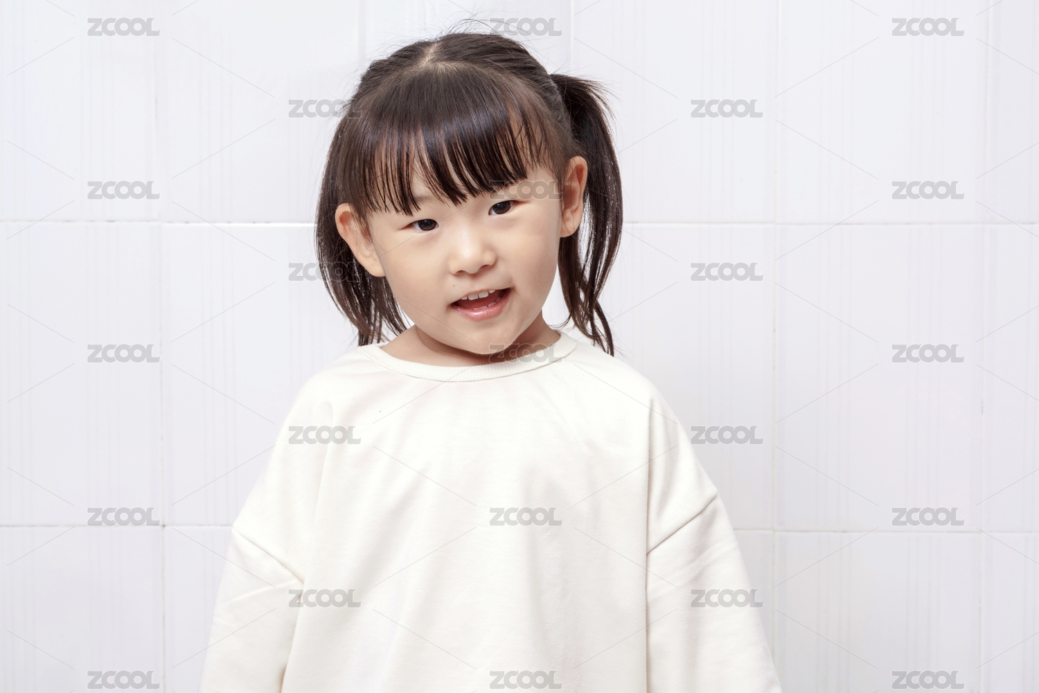 白色背景下开心的小女孩