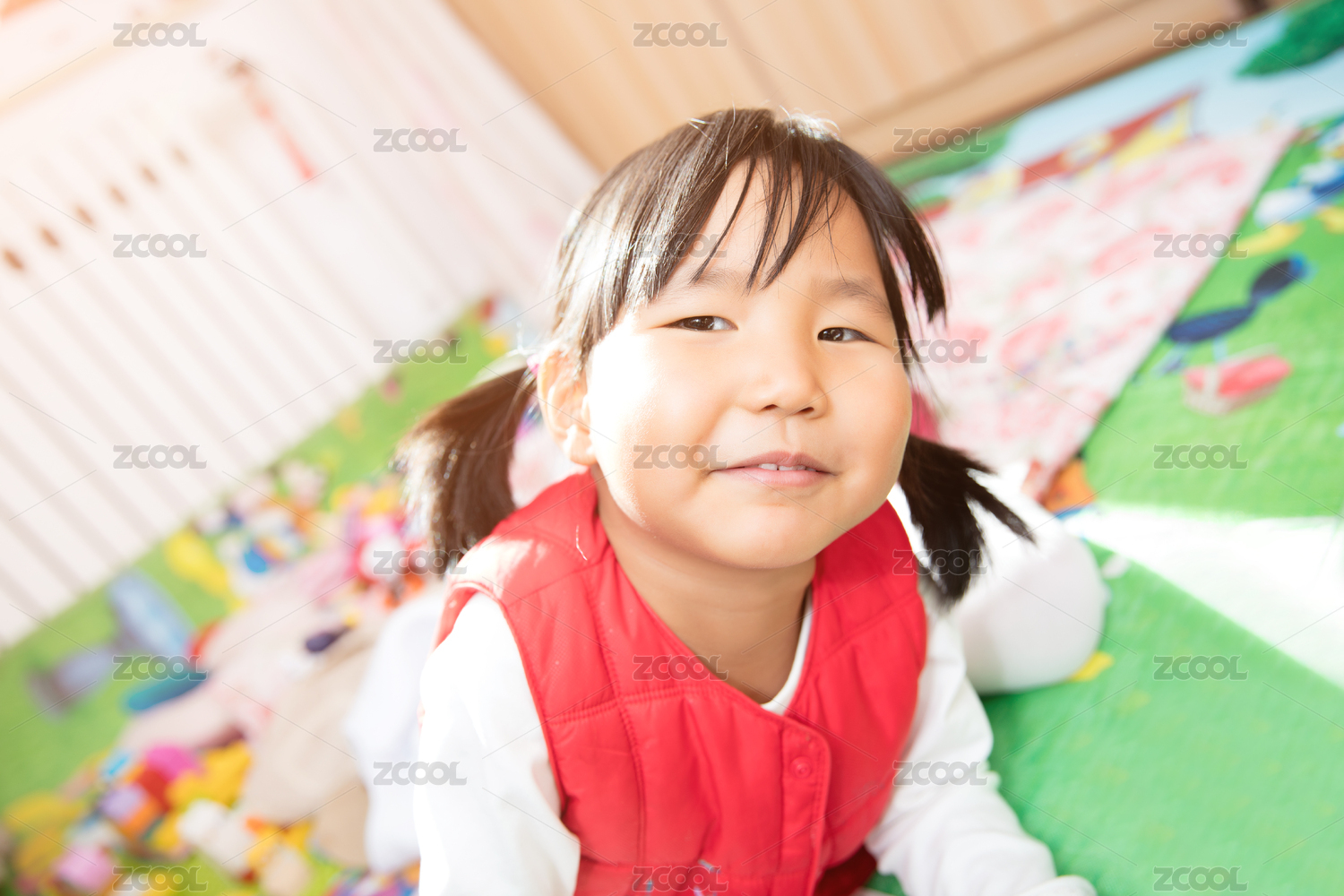 卧室内的四岁女童在玩耍