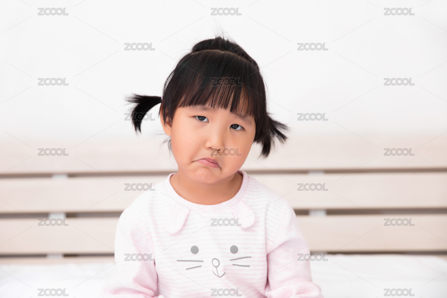 坐在床上抬头看的小姑娘
