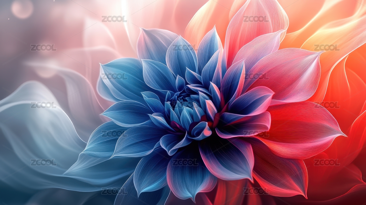 花朵花瓣绽放科技背景抽象数字艺术插画