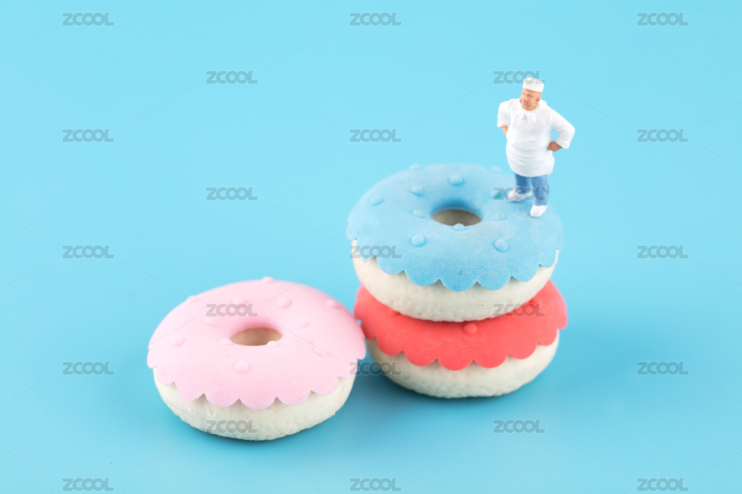 微缩创意摄影,在甜甜圈上边忙碌的糕点师