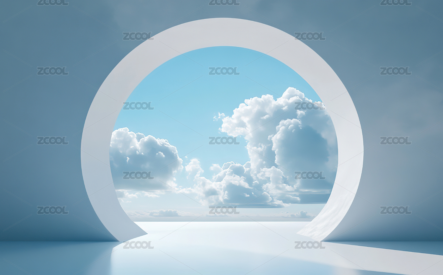 圆形窗洞外的蓝天白云