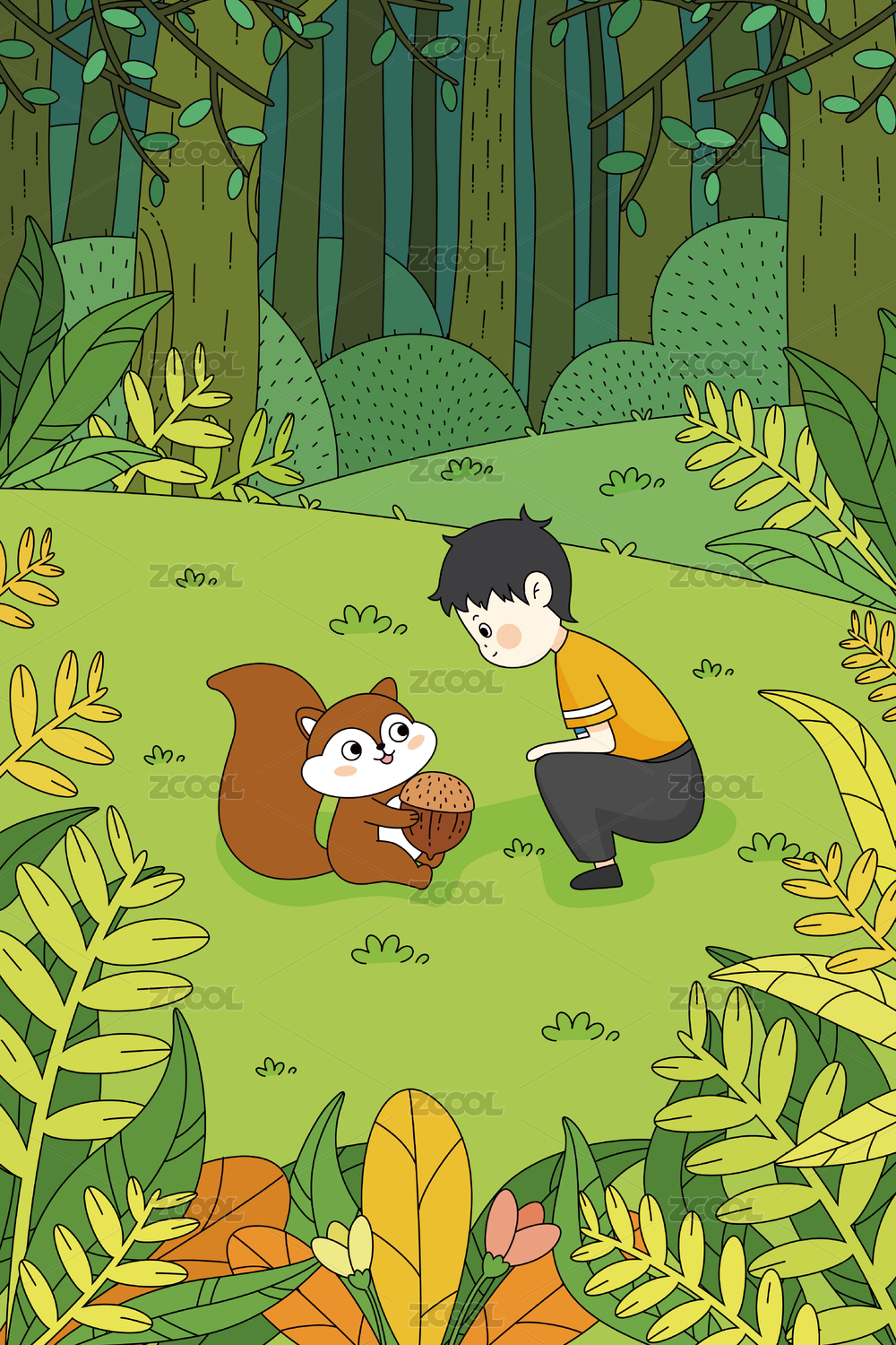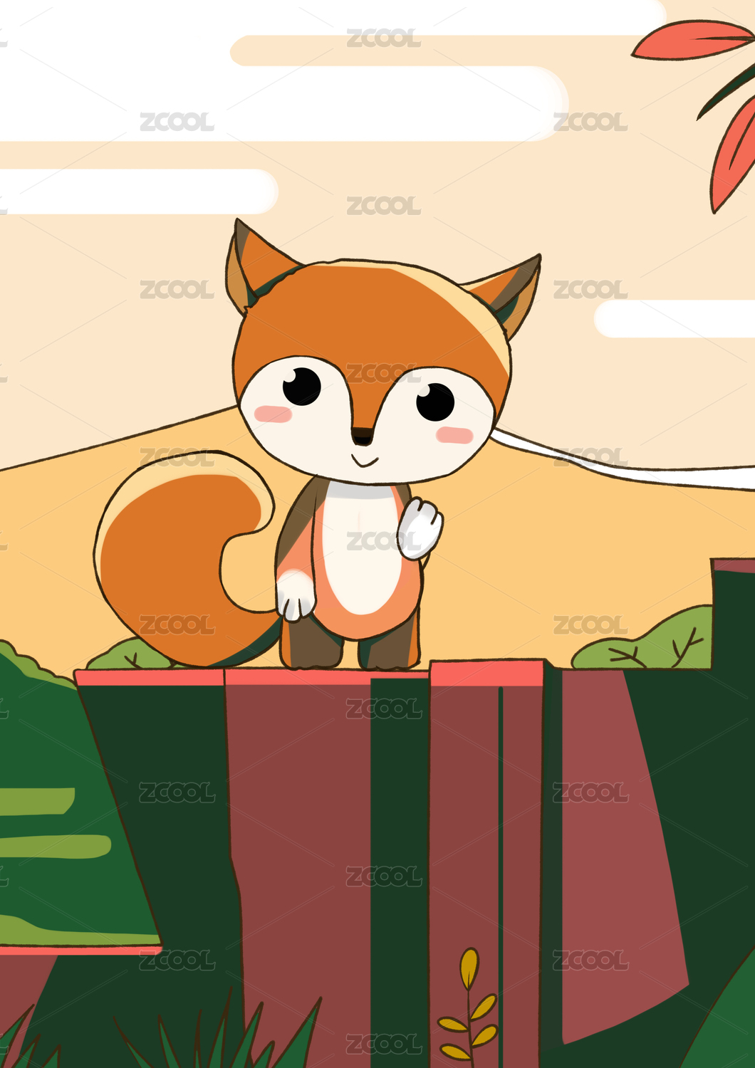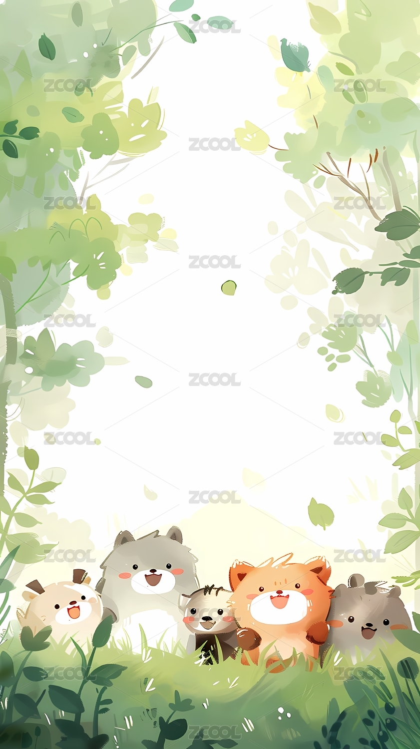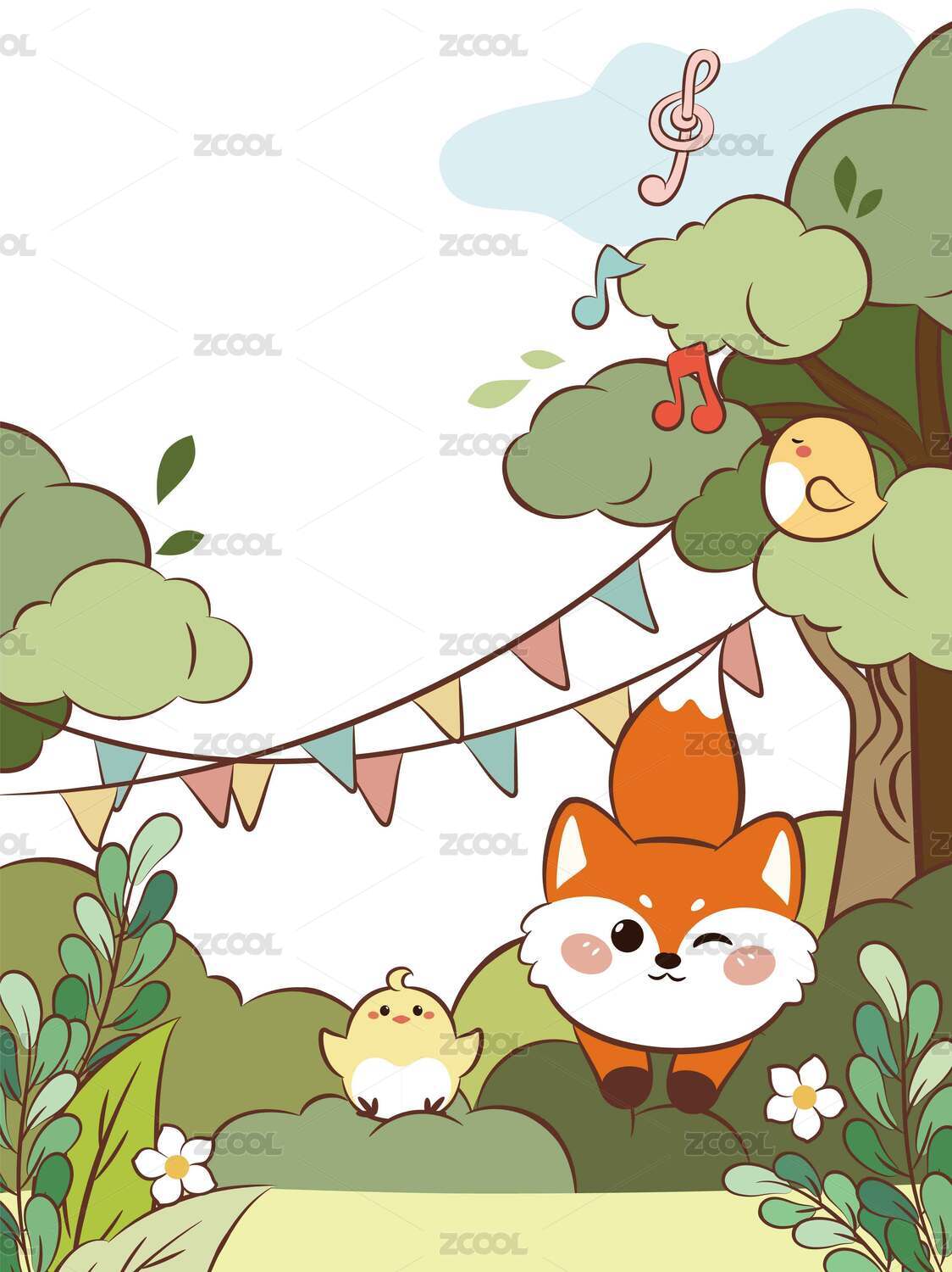 可爱卡通动物森林背景小象狐狸贺卡.jpg