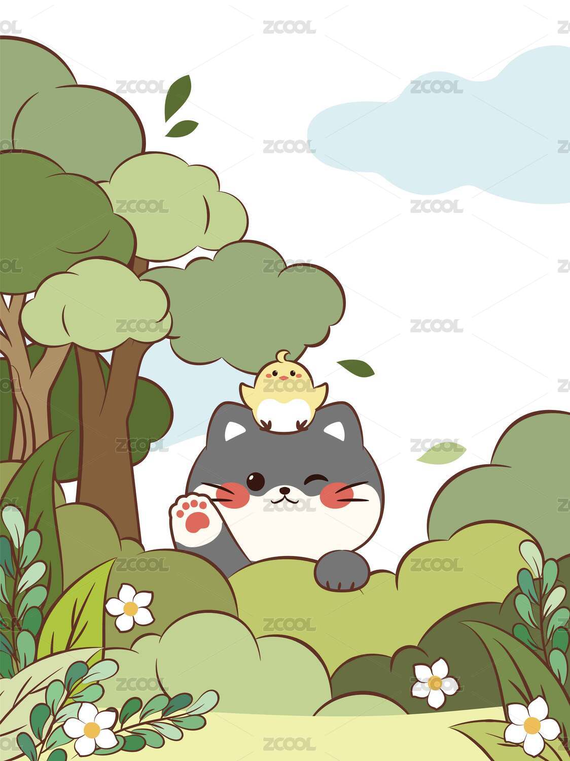 森林里的萌猫奇遇记 卡通猫咪的自然之旅
