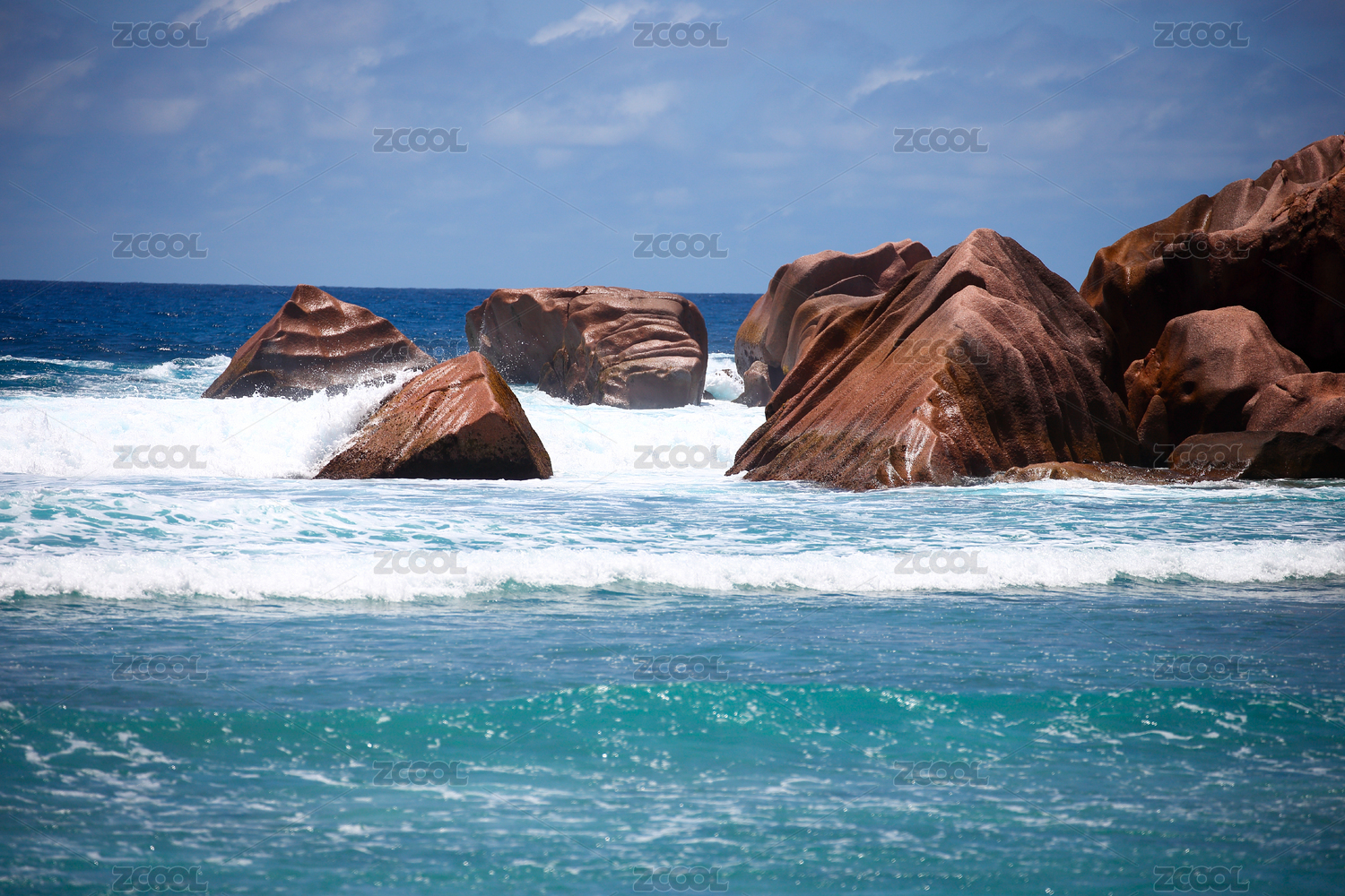 非洲塞舌尔海滩热带海岛的礁石