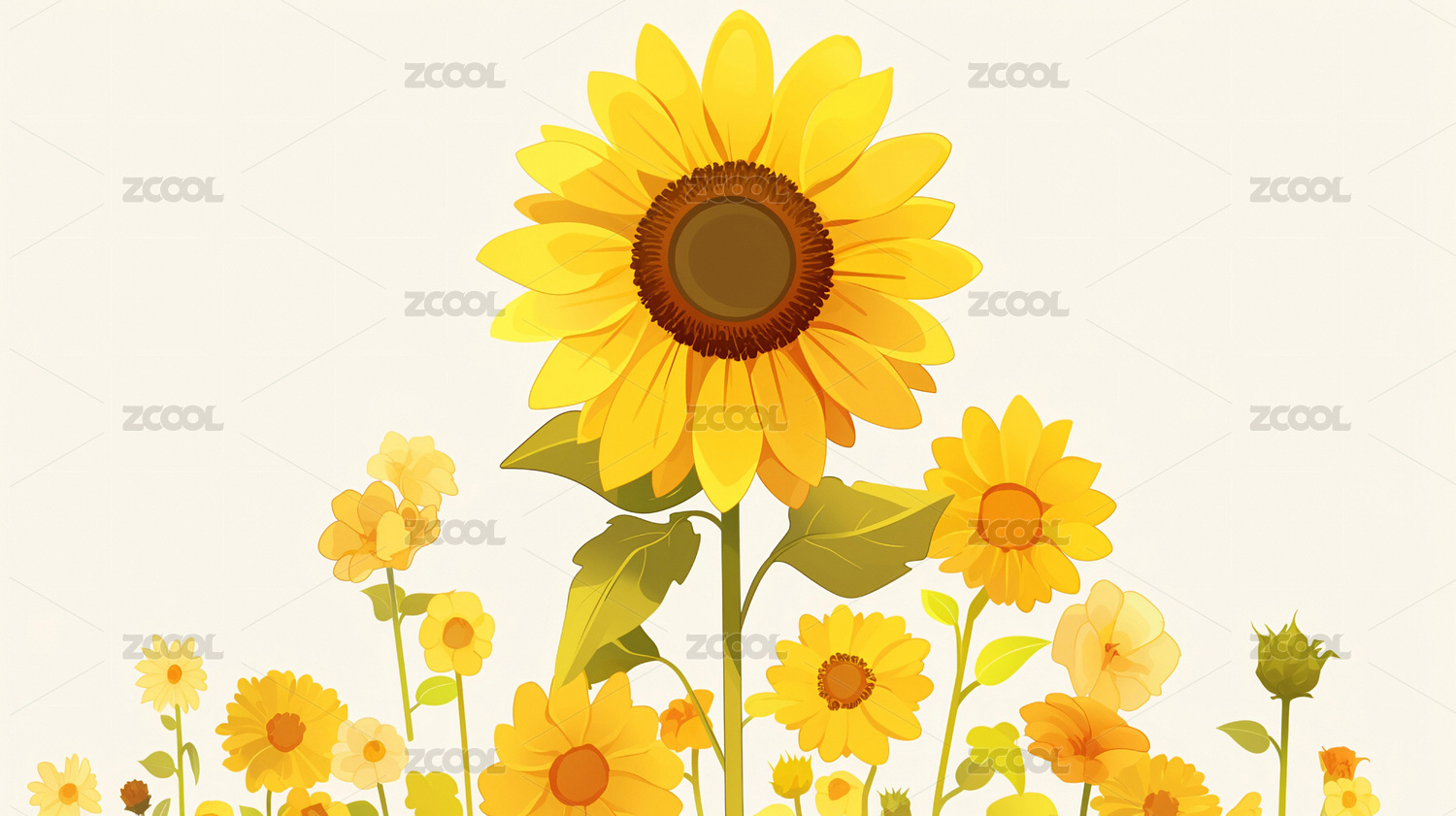 植物,自然,花,向日葵,节气,叶子,插画,户外,生长,秋天