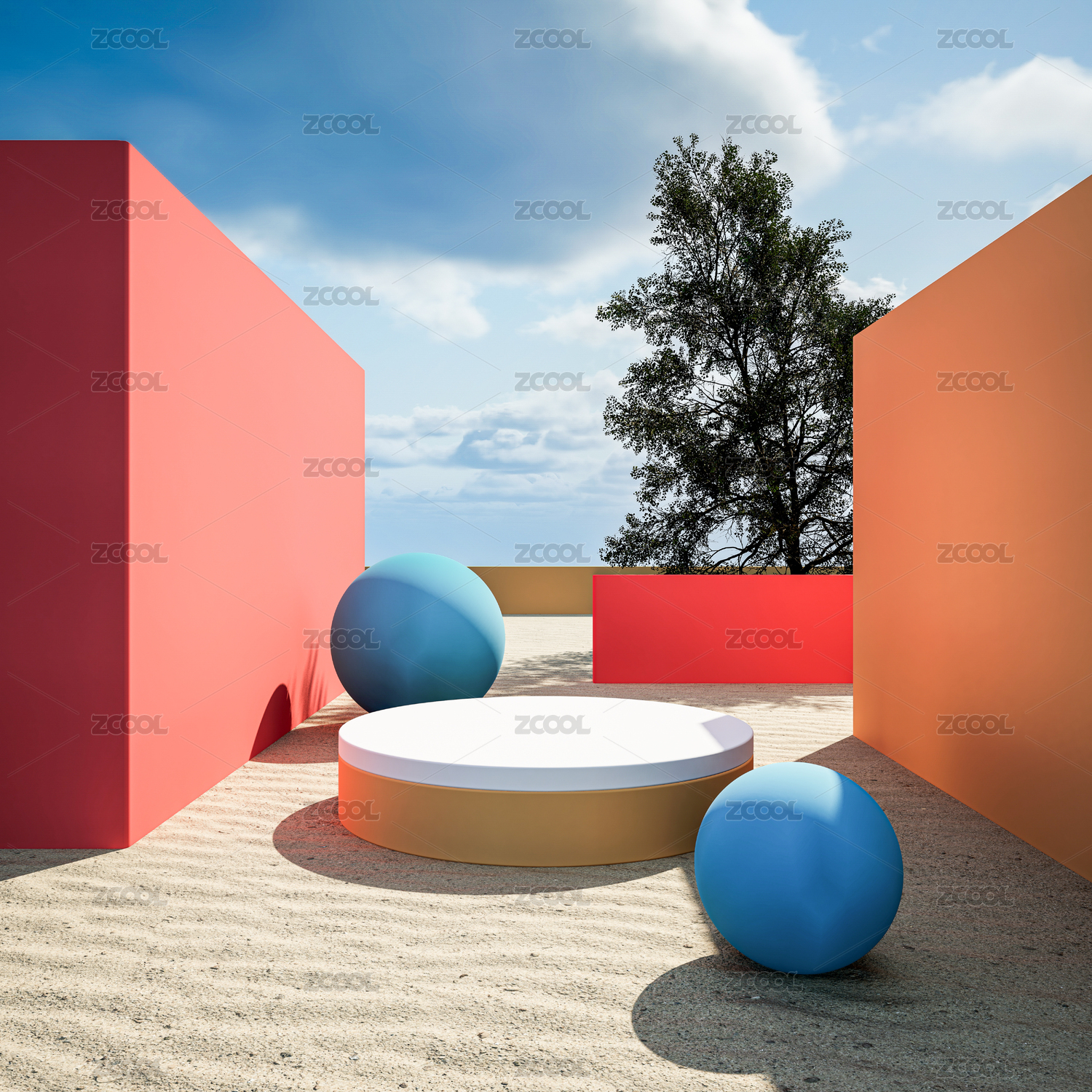 几何台阶与圆柱体的现代构图