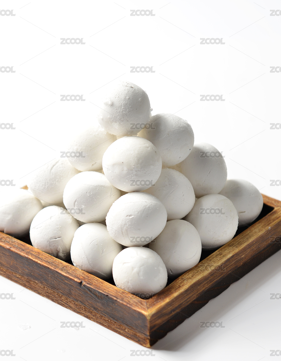 木纹背景上摆放的速冻汤圆