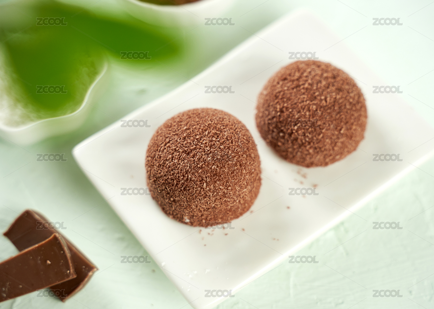 白色盘子里的巧克力味麻薯