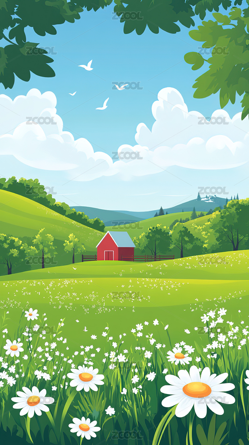 田园草地插画