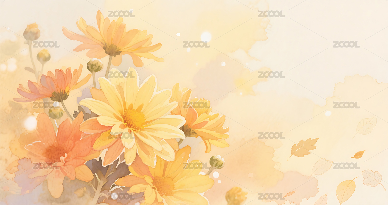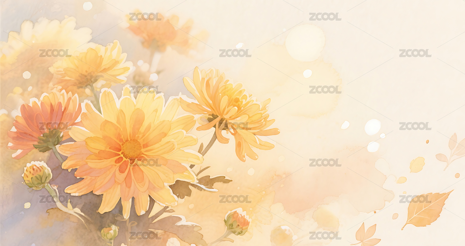 秋天菊花晕染氛围插画背景