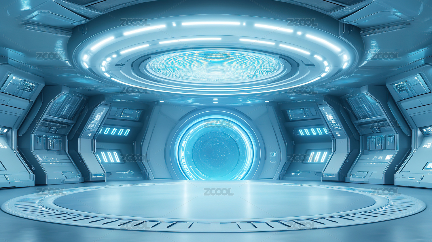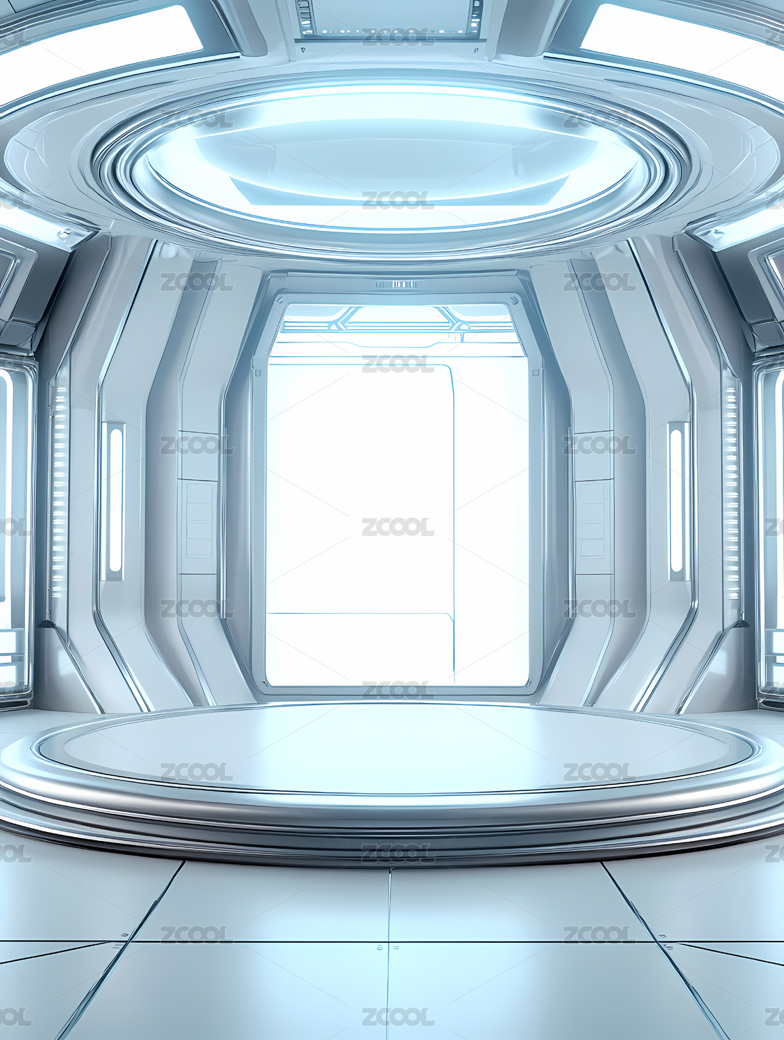 现代风格白色明亮的有着圆形窗户的室内建筑