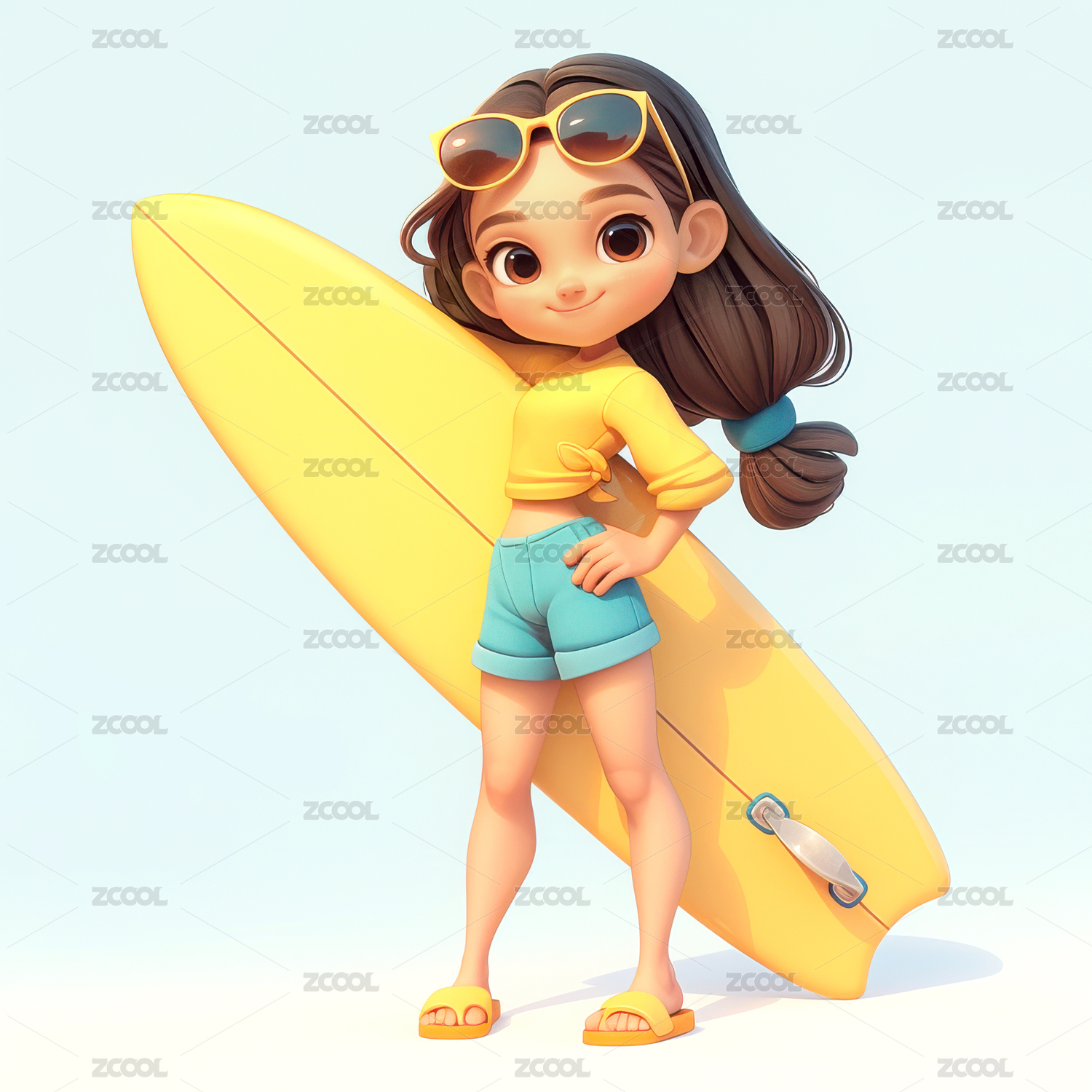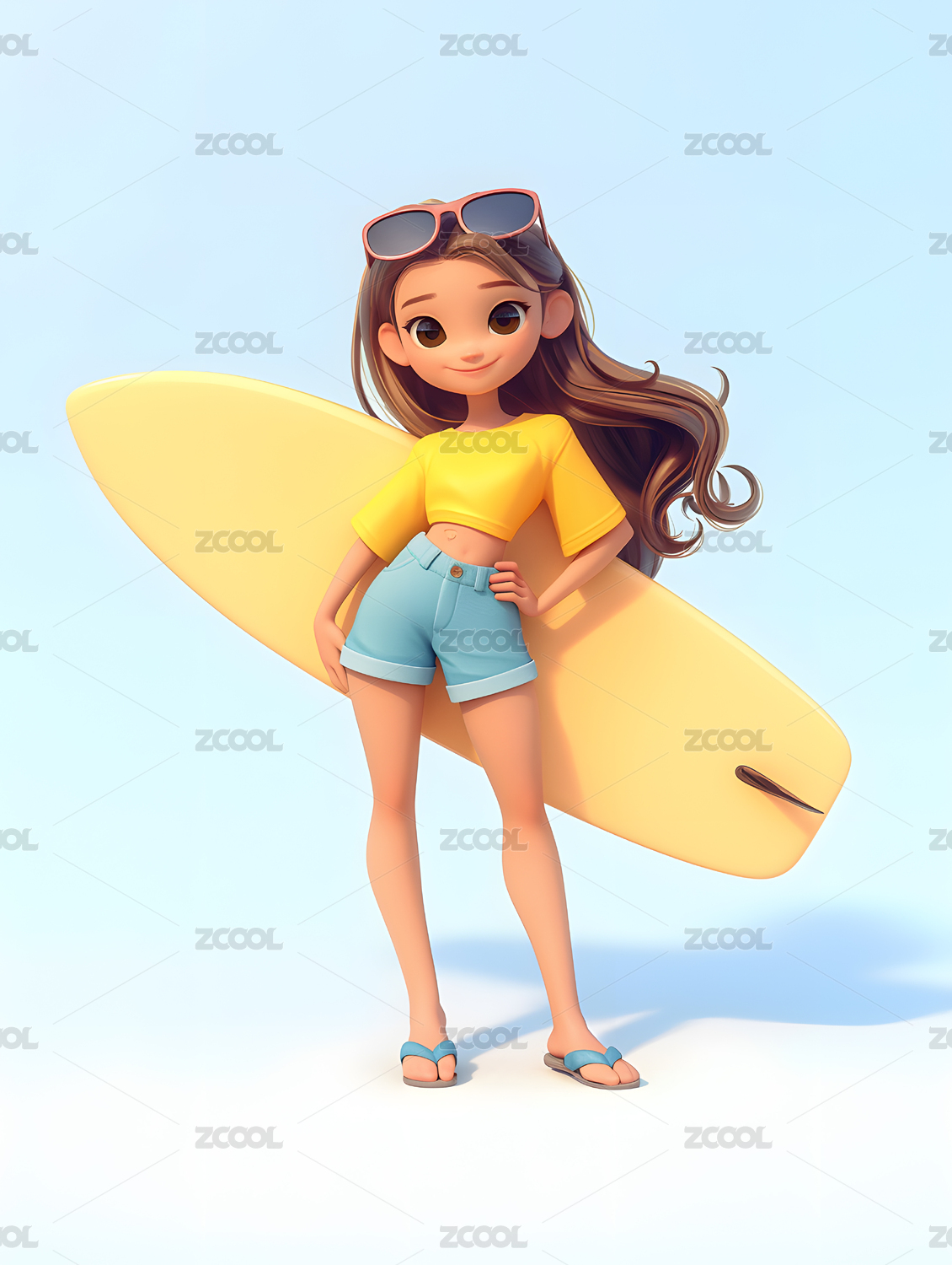 3D卡通阳光冲浪女孩