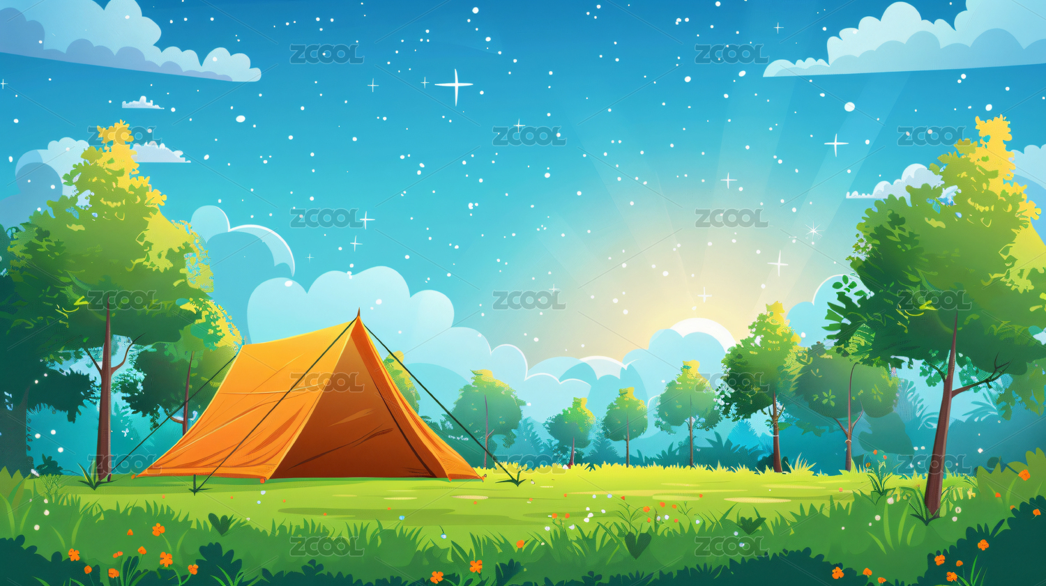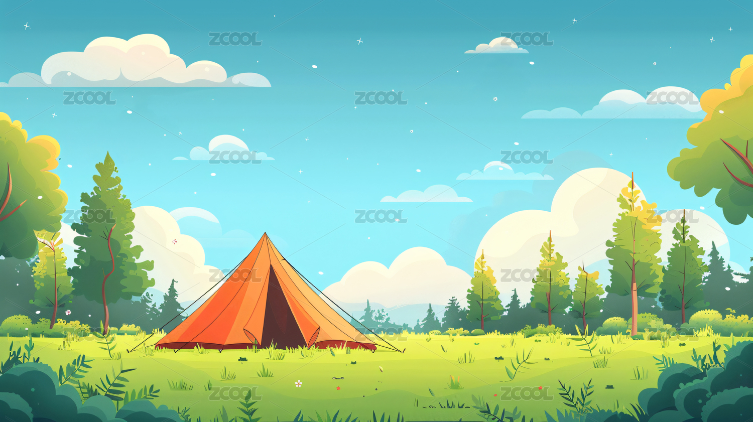 自然,风景,清新,插画,夏天,露营,春游,草地,帐篷,度假