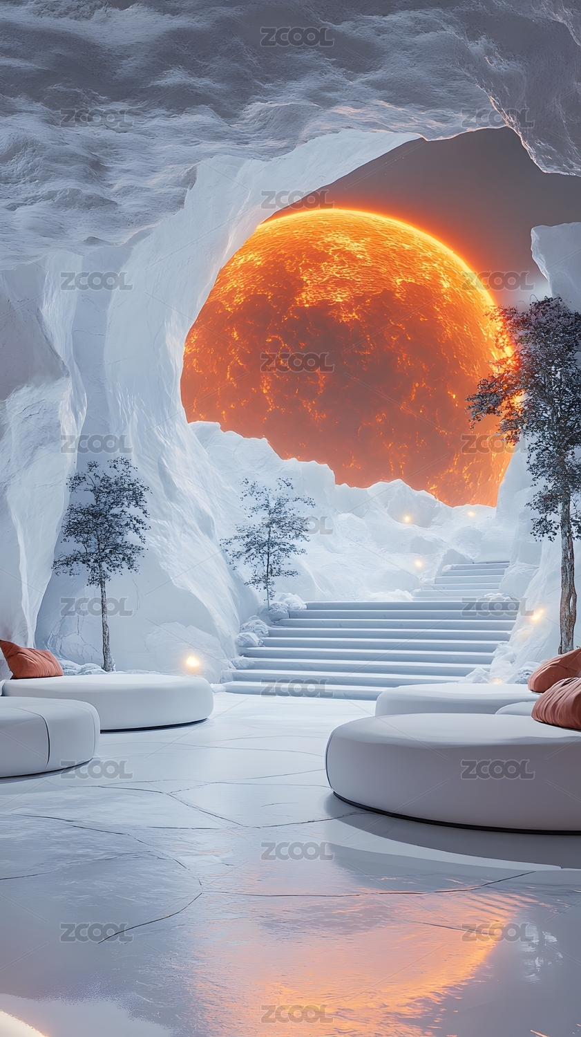 白云,云海,灯光,洞穴,光线,光影,建筑,科幻,梦幻,奇幻