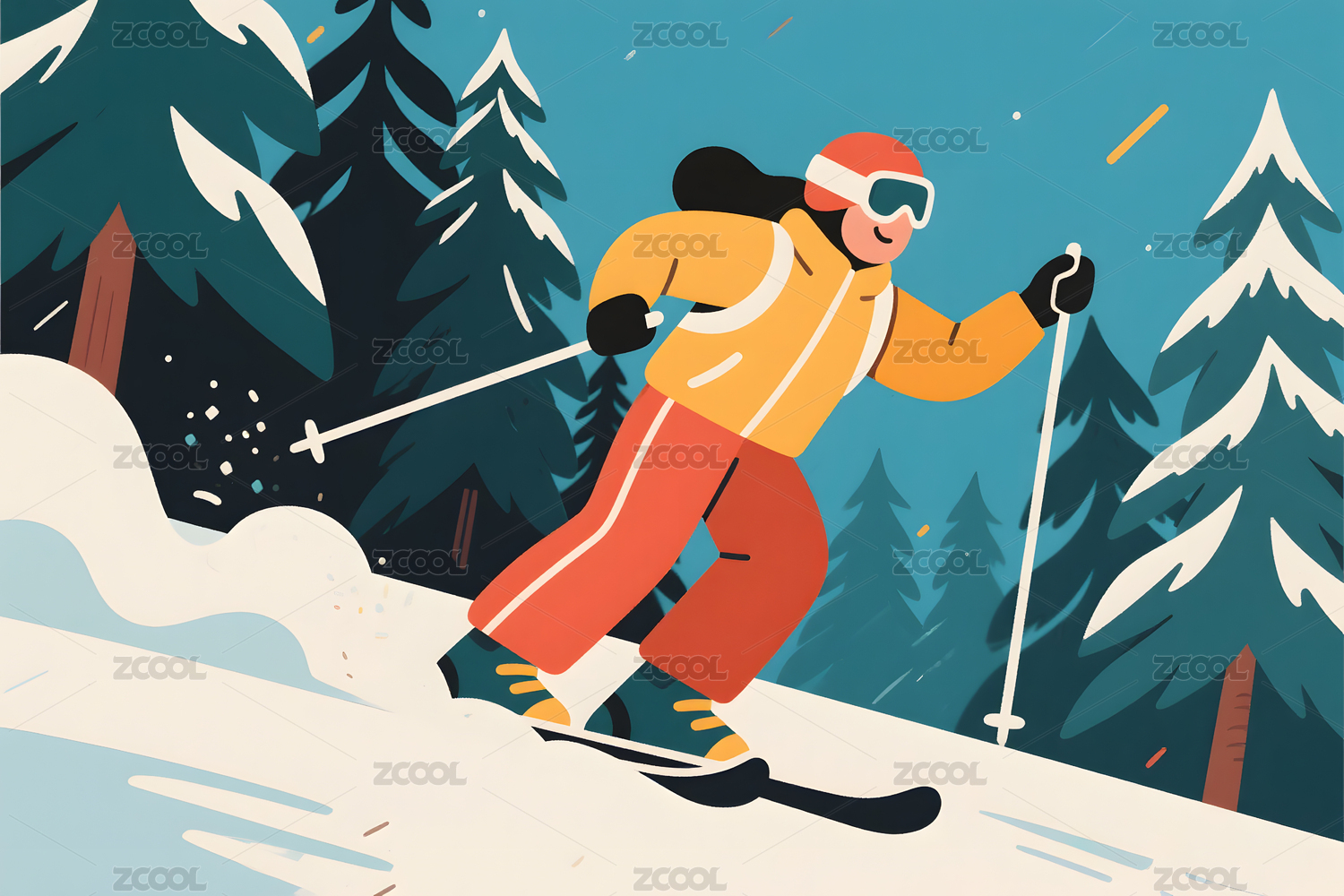 冬日滑雪运动插画