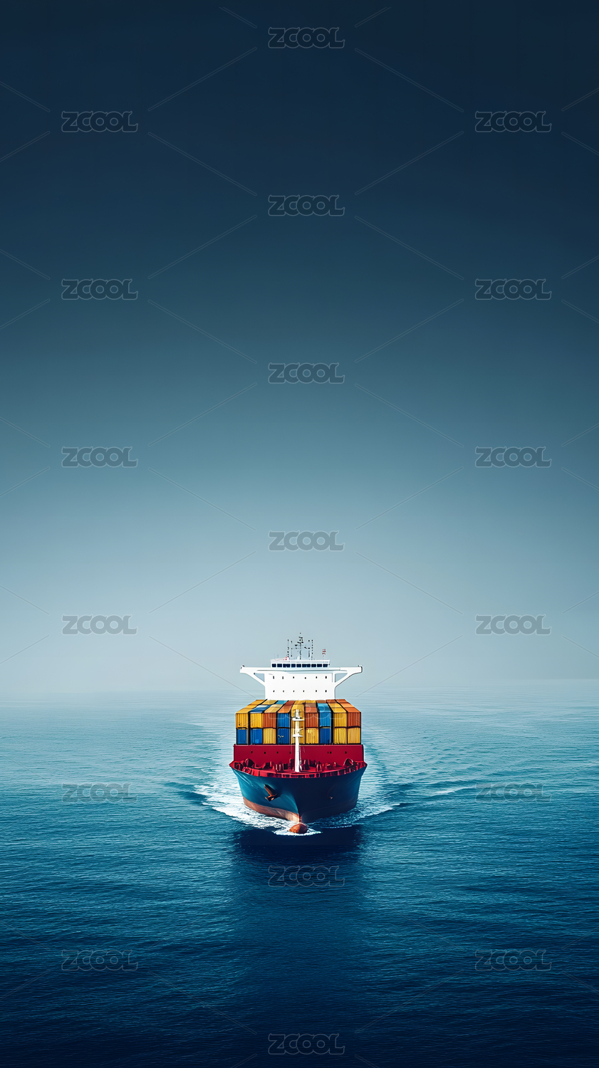 现代,蓝色,极简,插画,粉色,云朵,天空,简约,货轮,航行