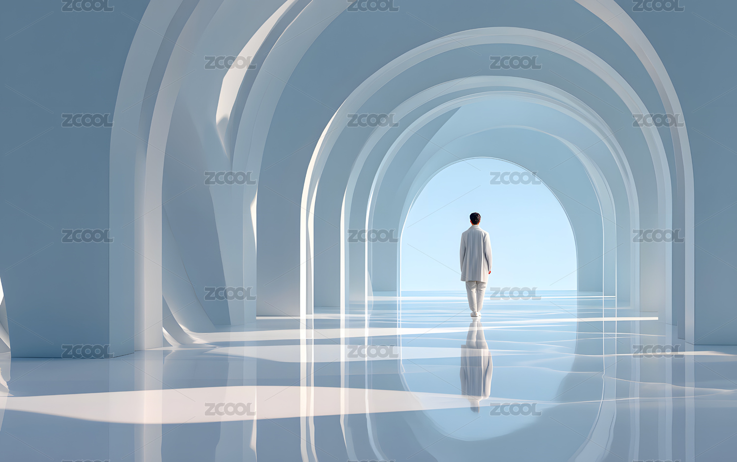 三维,立体,3D,建筑,楼梯,蓝色,光,空间,现代,极简