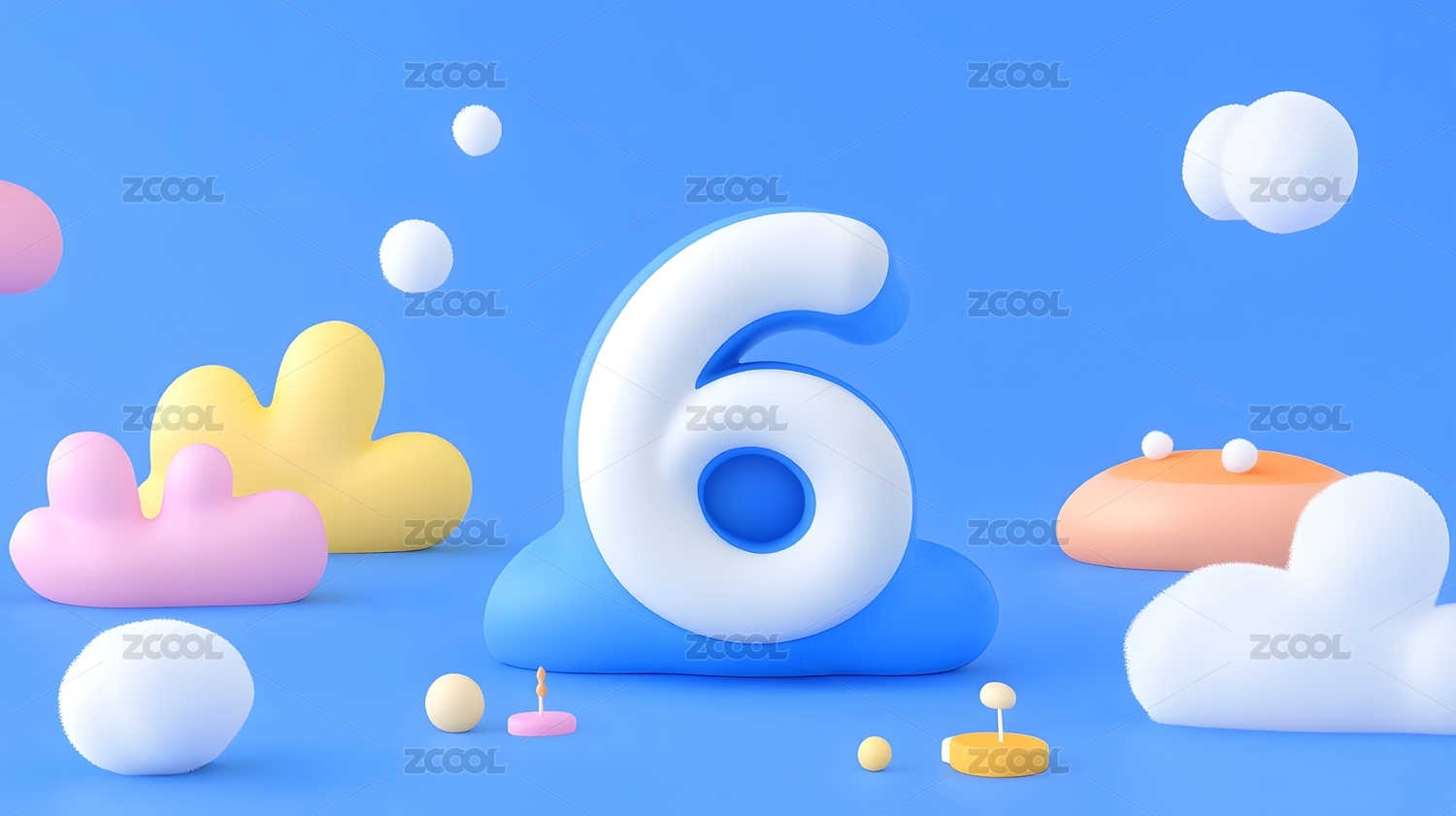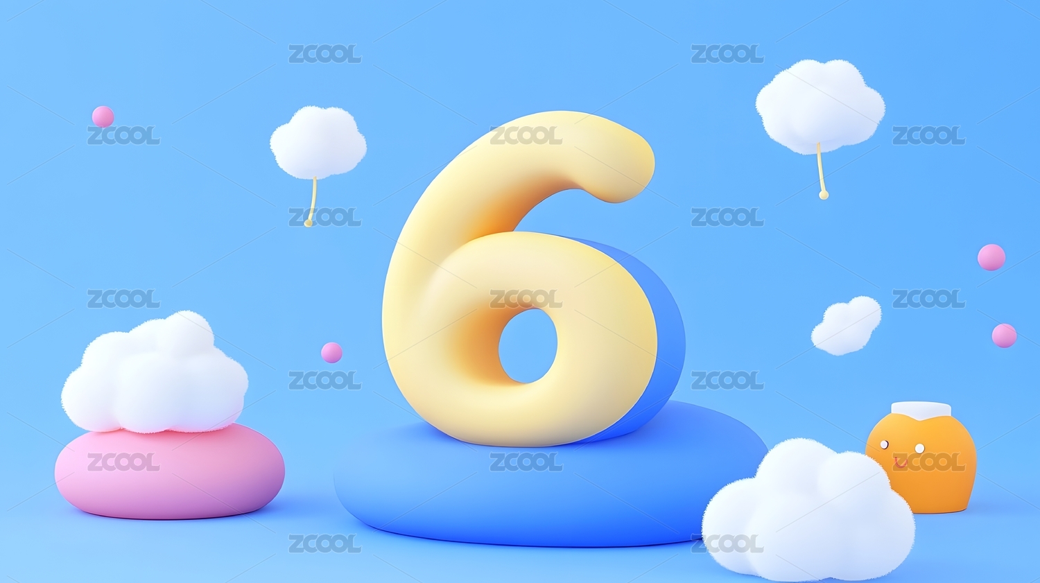 蓝天白云下的粉色数字6