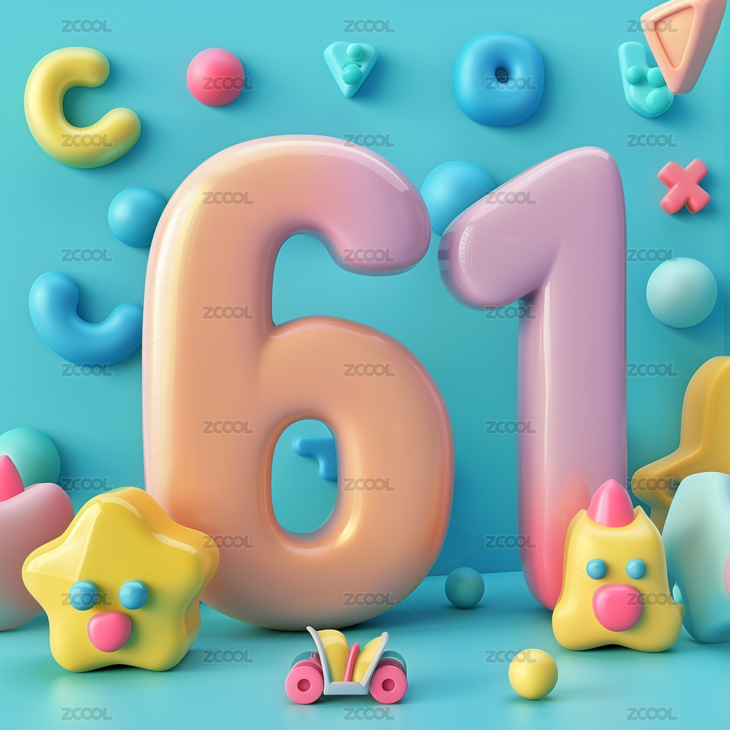 61立体彩色数字 3D渲染 儿童节