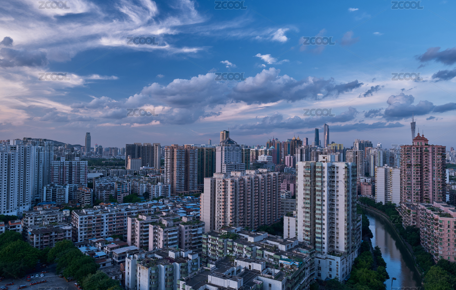 航拍视角鸟瞰广东省广州珠江新城CBD城市