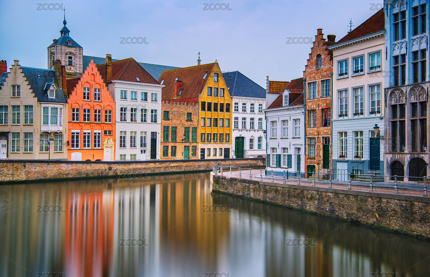 欧洲比利时布鲁日河边彩色房子