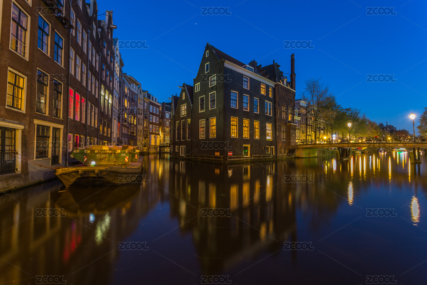 荷兰阿姆斯特丹夜景水上屋