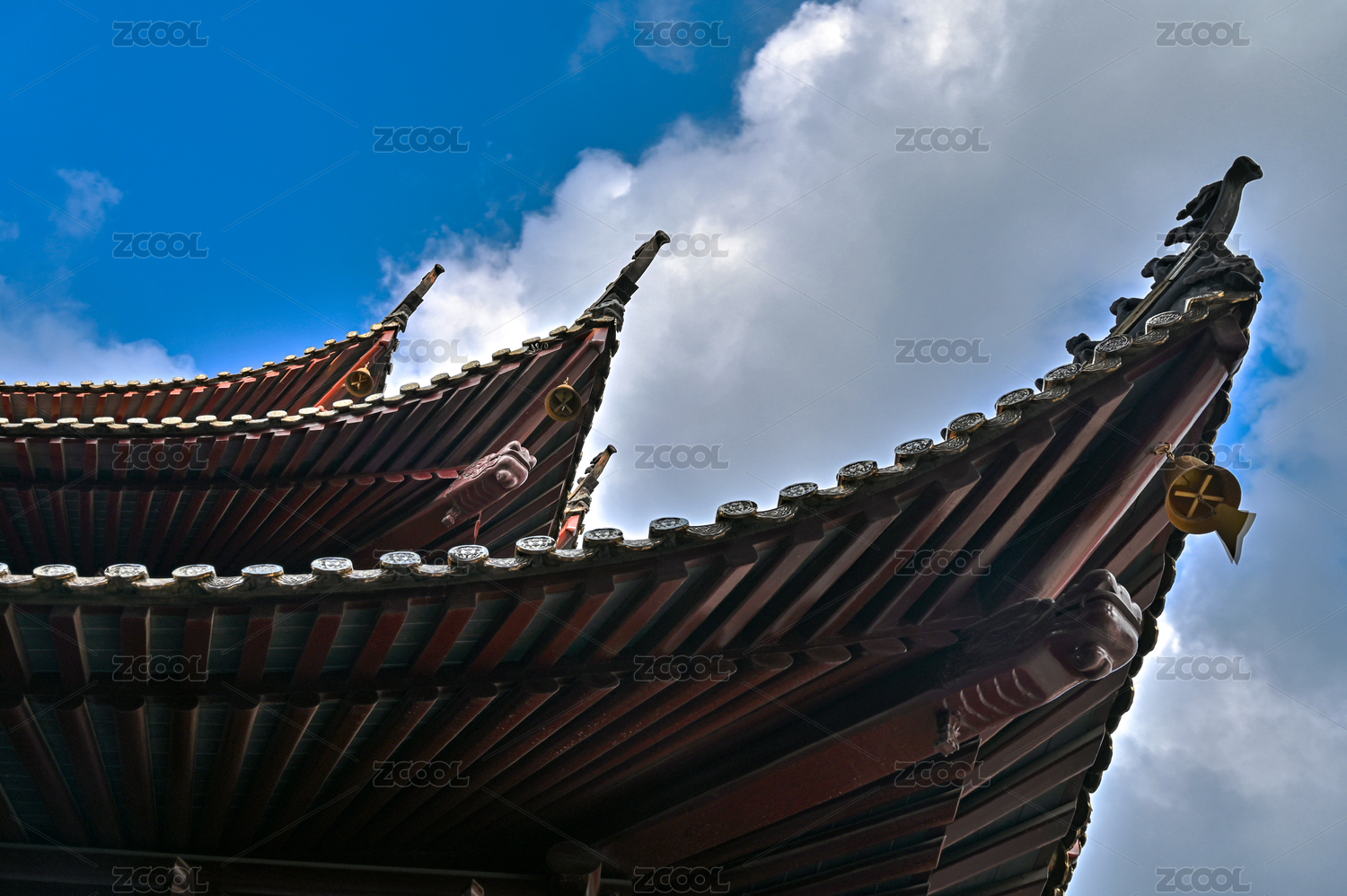 中国寺庙建筑屋角飞檐造型仰拍特写