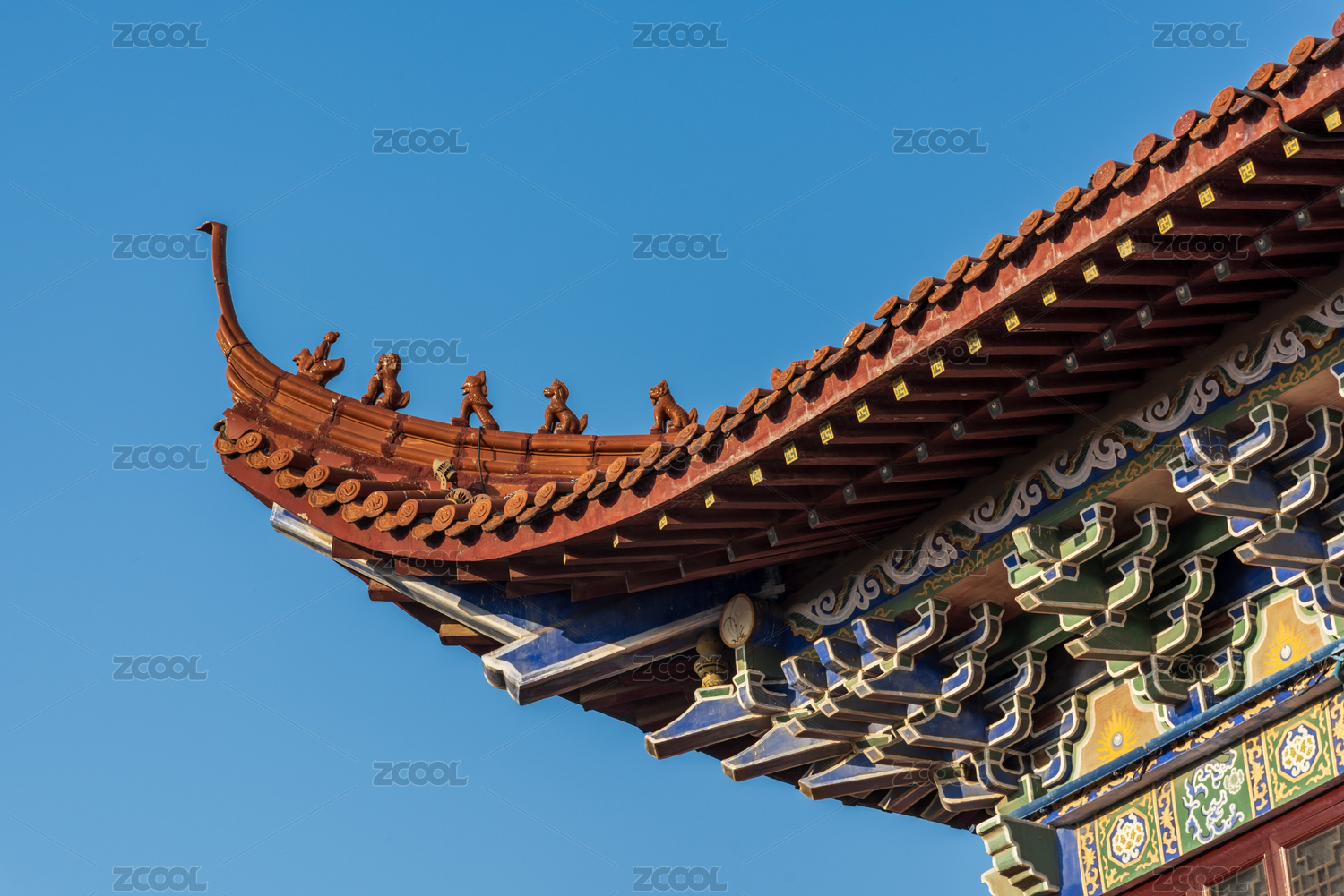 中国古典建筑屋角飞檐造型特写