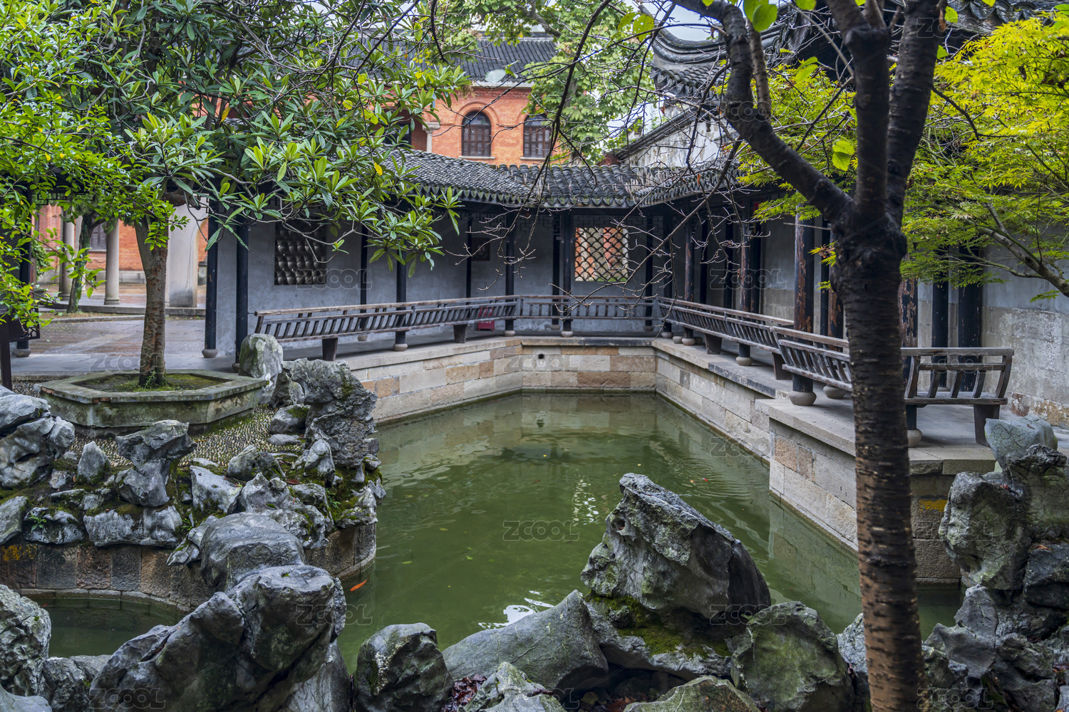 无锡惠山古镇寄畅园秉礼堂前池塘景观