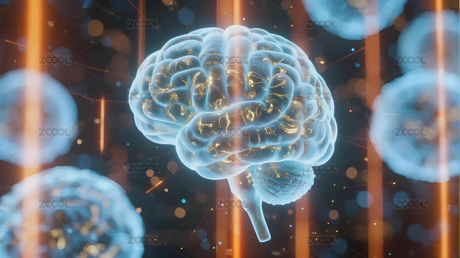 发光大脑与漂浮粒子图像