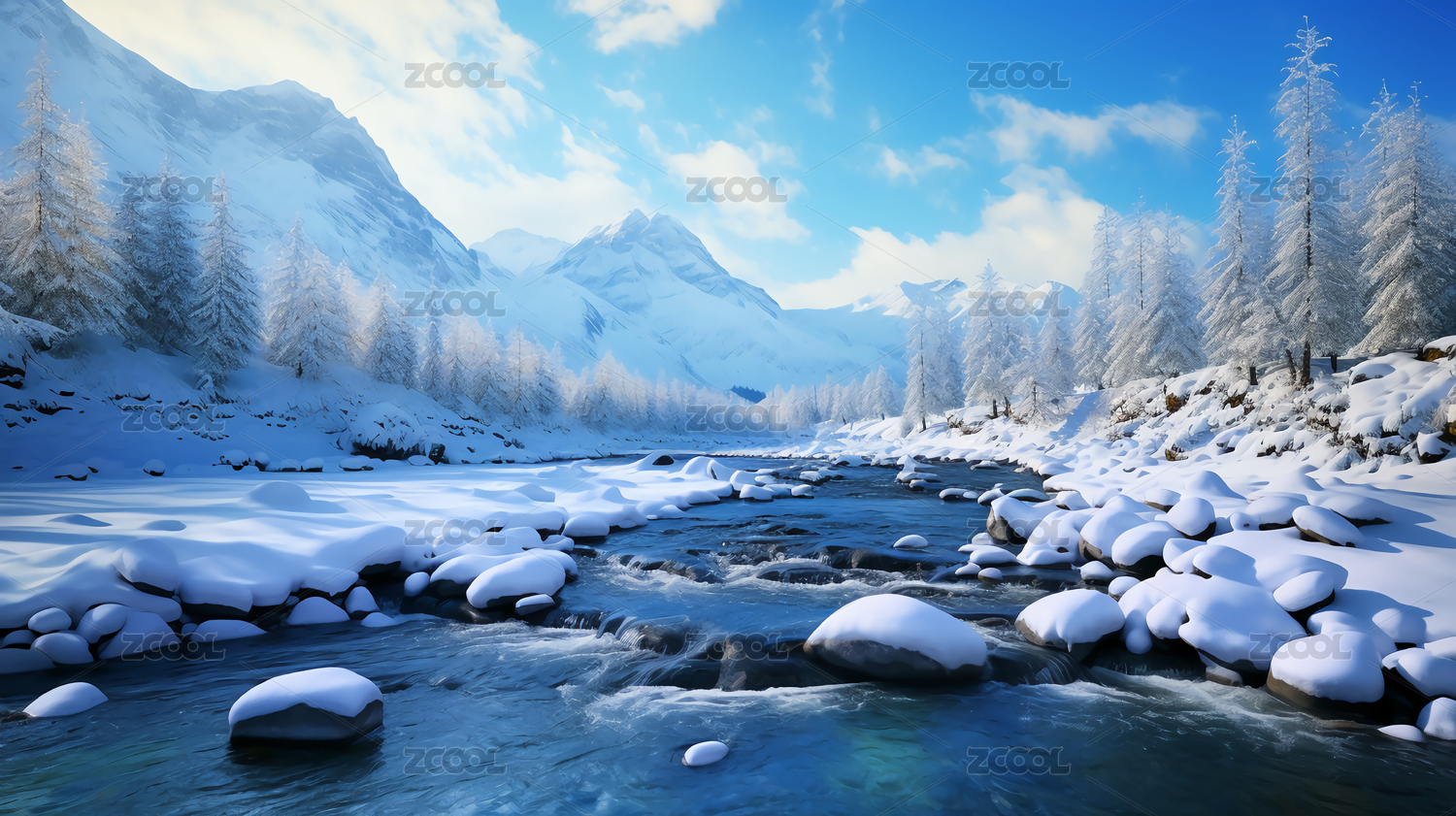 雪山河流冬季自然