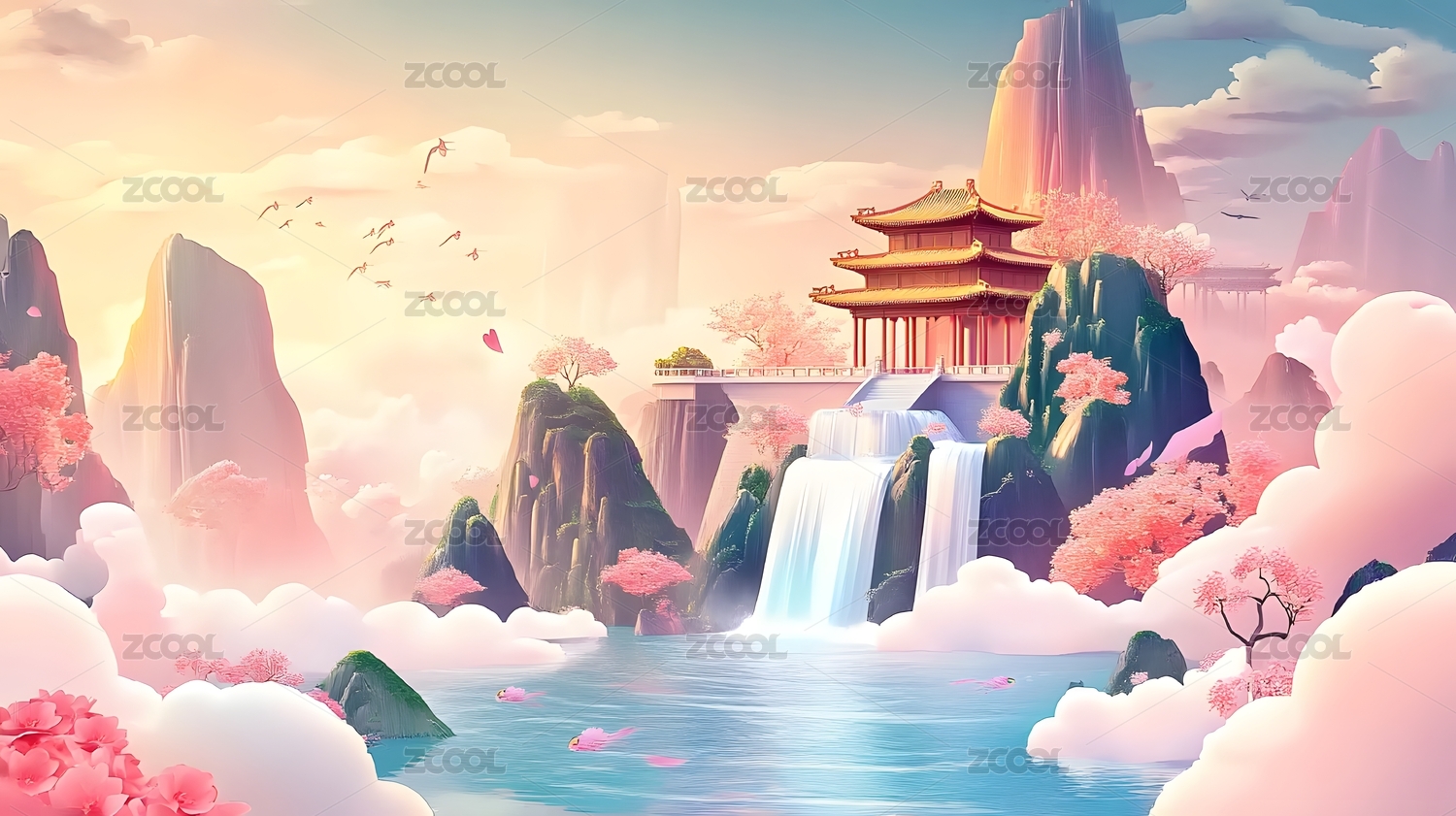 琉璃古风仙境 古风山水唯美意境背景