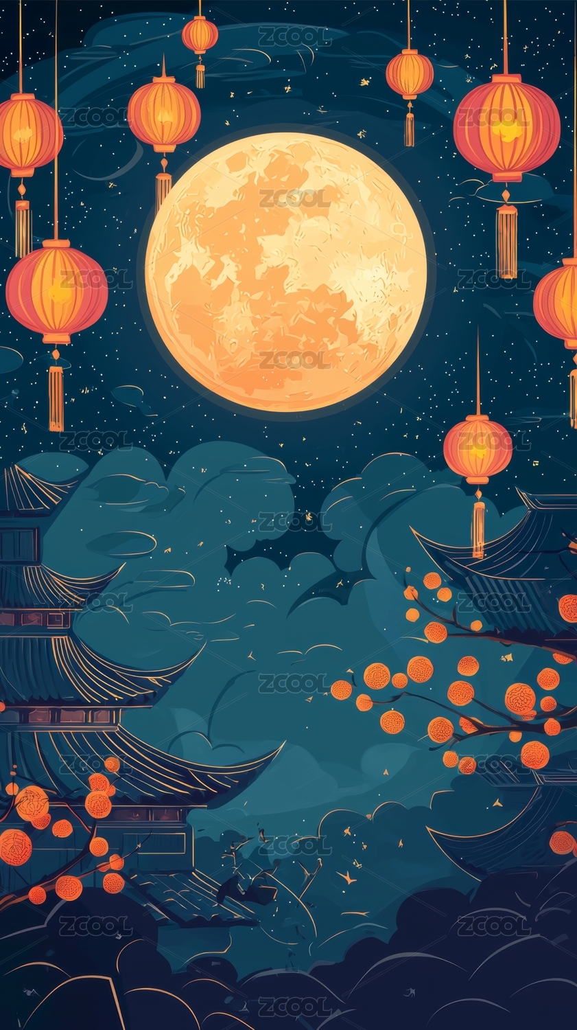 古风中秋夜景插画