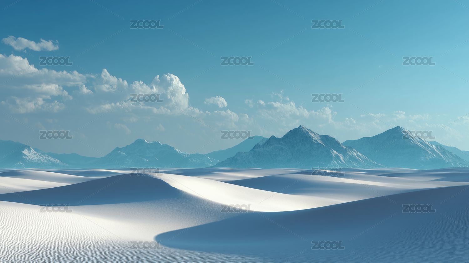 超现实主义起伏不断的白色沙丘和湛蓝天空